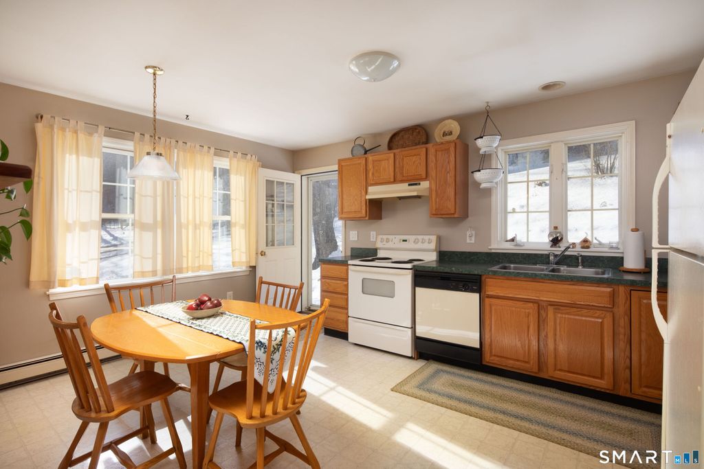 This charming, bright, and well-maintained home offers comfortable one-level living with two bedrooms and one bath, set on two acres in a peaceful, partially wooded setting that abuts the Town of Salisbury forest land, connecting to U.S. land and the Appalachian Trail. Highlights include a warm and welcoming eat-in kitchen that opens to a cozy living room featuring a wood-burning fireplace. The home offers generous closet space throughout, along with a full basement with high ceilings and a footprint that provides excellent potential for future expansion. Just minutes from the Town of Salisbury, local public and private schools, shops, restaurants and activities, this pristine, move-in-ready home presents a wonderful opportunity for easy, comfortable living.