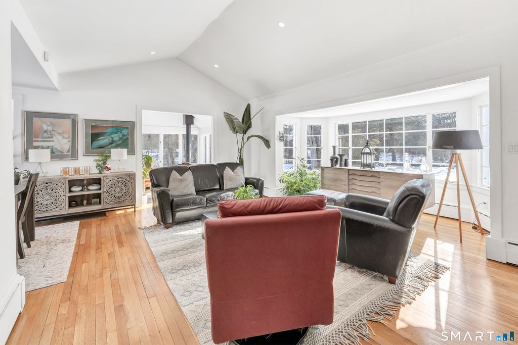 Tucked away in Norwalk's desirable Cranbury neighborhood, this fully renovated 3-bedroom, 2-full-bath home sits on over 3 beautiful acres with a pond-a rare and peaceful setting. Walk right into a bright, sunny living room with a gorgeous stone wood-burning fireplace, perfect for cozy nights. The home flows into the dining area and family room, featuring a wall of windows that look out over the property and a wood-burning stove that adds warmth and charm. The kitchen offers plenty of counter space and a door that leads straight to the backyard-great for grilling, entertaining, or just stepping outside with your morning coffee. On the main level you'll find two spacious bedrooms, one with an en-suite bath, along with an additional full bathroom with double vanity, tub, and shower. Laundry is also conveniently located on the main level. Upstairs is the third bedroom, ideal for guests, a home office, or extra living space, with tons of storage. Outside is where this home really shines-relax by the pond, fish, watch wildlife pass through, toss a ball in the level yard, or enjoy the privacy and open space that make this property feel like a true retreat. A perfect rental for anyone looking for comfort, space, and a peaceful setting-while still being close to everything Norwalk has to offer. ADDITIONAL 2 BEDROOM, 2 BATH APARTMENT AVAILABLE ON THE PROPERTY FOR ADDITIONAL RENT- Available after 4/1.