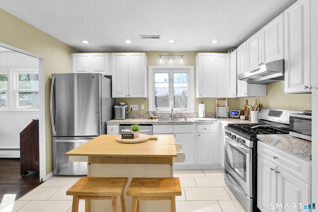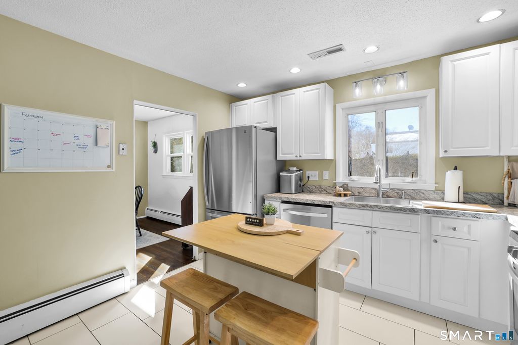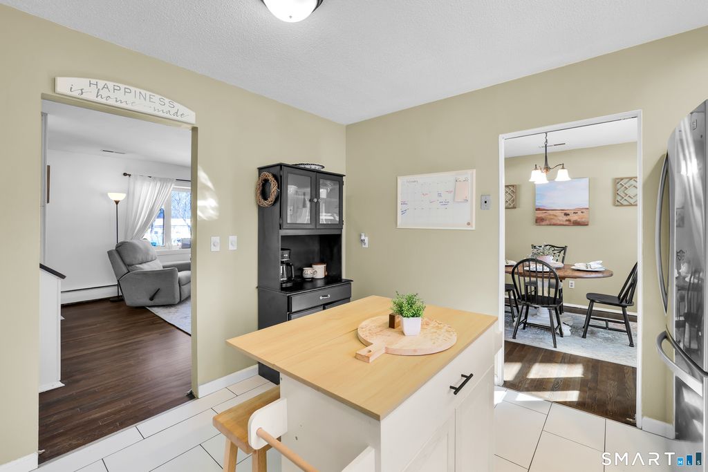 At the end of a quiet street in Hamden, this classic white split level at 86 Lent Road offers the perfect mix of comfort, functionality, and timeless style. Set on a lightly wooded 0.23 acre level lot, this three bedroom, one full and one half bath home welcomes you with a bright main level designed for everyday living and easy entertaining. The living room features a beautiful bay window that fills the space with natural light and flows seamlessly into the dining area, where hardwood floors add warmth and character. The remodeled kitchen is both stylish and practical, complete with built ins, an island for casual seating, tile flooring, and a thoughtful layout that makes meal prep feel effortless. Upstairs, you will find three bedrooms with hardwood floors and a full bath, offering comfortable private spaces to unwind. The lower level provides a cozy family room with wall to wall carpet and a convenient half bath, along with a partial walk out basement that adds flexibility for storage or future use. Central air, natural gas heat, public water and sewer, an attached under house garage, and a private paved driveway add to the home's everyday ease. Located close to parks, golf, medical facilities, and commuter routes, this inviting home delivers a balanced lifestyle in a well connected Hamden setting. Schedule your private showing and see how easily this home fits your next chapter.