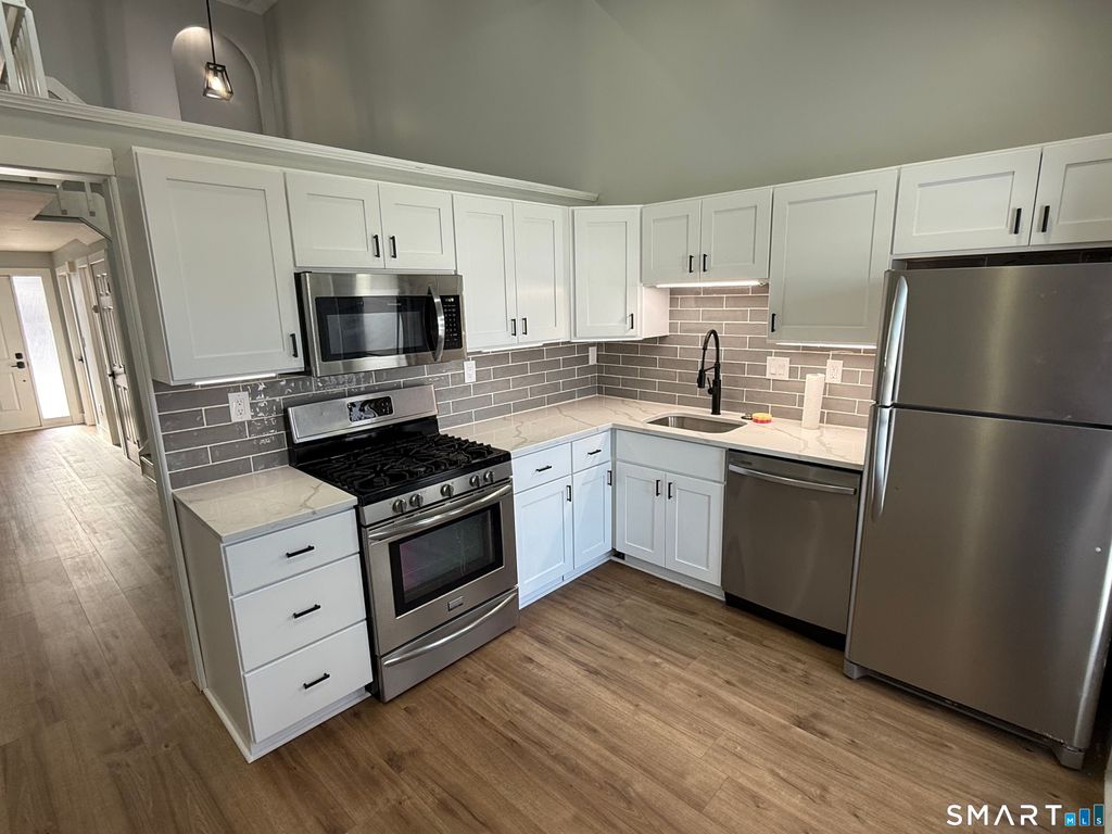 25 Hickory Lane, Rocky Hill - Beautifully updated and truly move-in ready this 2 bedroom, 1.5 bath condo offers 1212 sq ft with lots of natural lighting, modern finishes, an attached garage and driveway parking. Recent upgrades include a brand-new gas fireplace with a with decorative mantel, newly installed central air conditioning, a newer boiler for reliable heat, and an updated kitchen with quartz countertops, under-cabinet lighting and stainless still appliances. Enjoy new luxury vinyl plank flooring throughout the living area, fresh neutral interior paint and fully renovated bathrooms with new fixtures. Convenient first-floor in-unit laundry includes washer and dryer. Step outside to your private patio with outdoor access ideal for relaxing or entertaining. The community also offers a rentable clubhouse for gatherings. A turnkey opportunity in a desirable Rocky Hill location close to shopping, dining, and commuter routes.