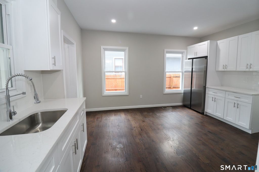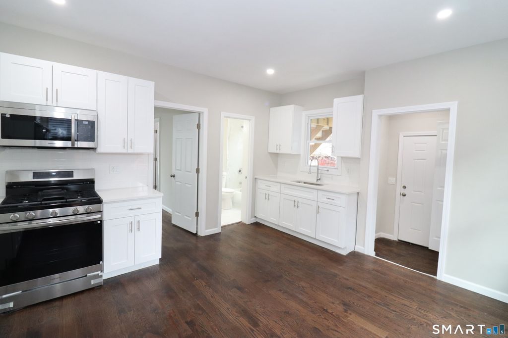 Welcome to Your Newly Renovated three Bedroom, one full Bath unit conveniently located on 0.10 acres of land with a open backyard that provides grounds for outdoor activities and relaxation. The property is located in the northend Neighborhood of Bridgeport, close to the mall, routes 8 and 95 highway access, local shopping areas, local entertainment, golf course medical facilities, parks and restaurant dining. Step foot into your fully Renovated first level Unit with updated features, fully renovated bathroom, remodeled kitchen with a laundry area, all new cabinets, new granite countertops, lots of space, newly gas heating system and furnace, new washer and dryer and stainless steel appliances. The Unit has off-street parking, new windows, refined hardwood floors, and a upscale modern look, and feel. Come home.