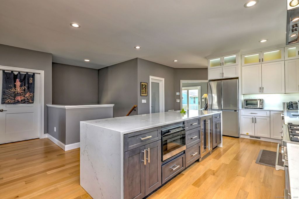 Meticulously maintained! Just move right in! Come and see this wonderfully accented property with so many quality features and personal touches that make this house a home! Just steps to an expansive sandy beach. Walk to the Audubon Center. Only four years old. The first floor features an open floor plan with a with a kitchen with ten foot quartz center island, quartz backsplash, luxury appliances, den, incredible pantry and a bathroom. There are sliders to front and back decks to enjoy Long Island Sound breezes. The second floor has three bedrooms, two full baths, laundry and sliders to another deck. The third floor loft with more picturesque views has so many possibilities-Family room, nice artist studio, quiet sanctuary with fantastic views. Paver driveway, walkways and patio with built-in firepit accent the outside spaces. The 26 ft.x 39 ft. patio makes entertaining a joy. Just a short drive to Walnut Beach and the Boardwalk at Silver Sands State Park. Not too far from Milford Center, the Town Green and all that has to offer- Quaint shopping, many restaurants, the Harbor and Train Station. The pictures tell a great story about this unique opportunity!