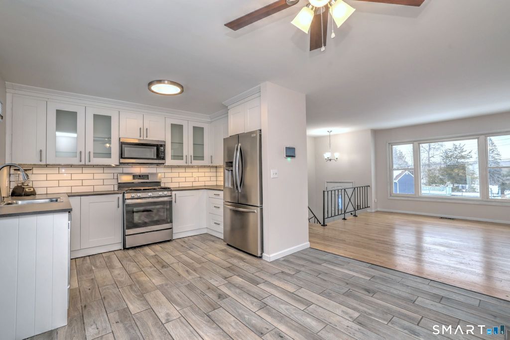 Welcome to 7 Hale Dr. nestled in a quiet neighborhood in the highly sought after Hilltop area of Ansonia. As you enter the main level with its open floor plan and hardwood floors throughout, the sunny spacious Living Room leads into the Dining Room with sliders to the outside deck. The renovated Kitchen with newer cabinets, SS appliances and countertops is just waiting for you to prepare the next warm winter meal. The hallway leads you to the remodeled Bathroom and 3 Bedrooms. The lower level offers a Rec Room with a cozy wood burning stove. There is an additional room perfect for a Home Office or anything you need. The newer washer and dryer is located in the lower level large unfinished basement space with the new hot water tank and work shop area. The home also offers a newer architectural shingle roof and gutters and many more upgrades. Just add your personal touches to make it your own. Conveniently located near local amenities and easy access to Rte. 8 and the Merritt Parkway. Don't miss this opportunity!