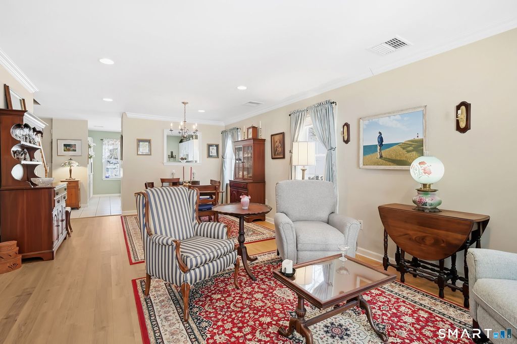 The one you've been waiting for in Henley Woods, a premium community for ages 55+ in West Hartford. This spacious home is light and bright and enjoys a lovely private setting. Open the door to a tiled foyer with a coat closet and access to the attached 1-car garage. The roomy kitchen has table space, tile floor and recessed lighting with easy flow to the open dining room/living room. The living area features luxury vinyl flooring simulating hardwood, crown molding and recessed lighting and opens to a light-filled sunroom with tile flooring and sliders to the patio. The first floor master suite allows for easy living, with a full bathroom including a walk-in shower, linen closet and large walk-in closet. The adjacent hallway houses the laundry with 4 year old washer and dryer and half bathroom with tile flooring and pedestal sink. The second floor includes a large bedroom with wall-to-wall carpet, a walk-in closet and a full bathroom with walk-in shower. There is storage in the utility room with newly updated mechanicals including gas furnace, hot water heater and central air handler all installed in September 2025. This tucked away location is like living in the country but just 2 miles to Bishop's Corner and 3.5 miles to West Hartford Center and Blue Back Square. If you're looking for a low maintenance turnkey home then this one can't be beat!