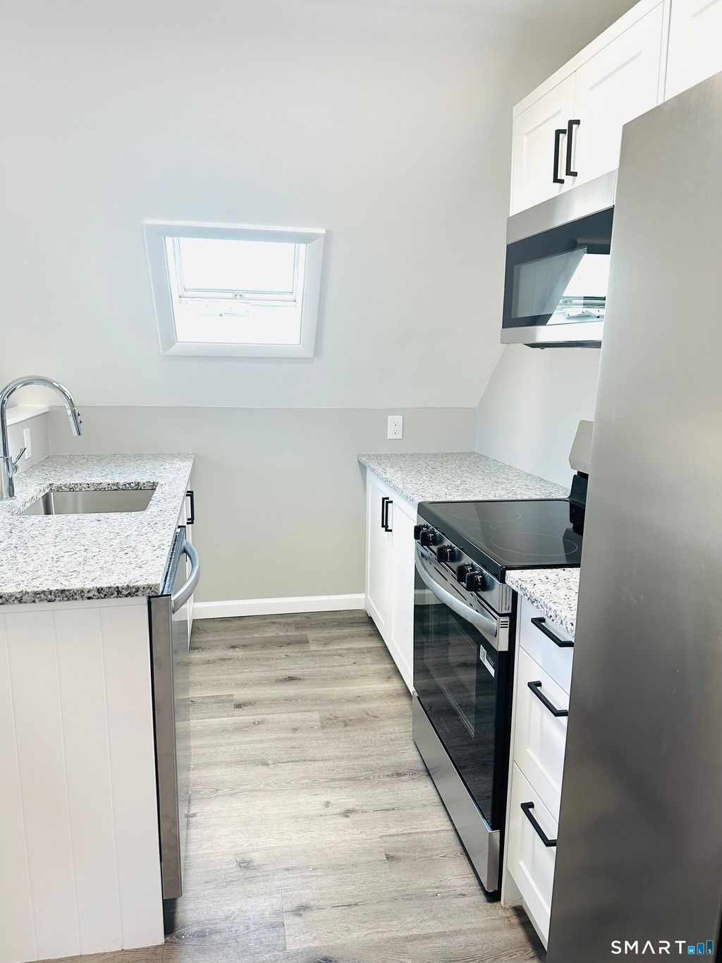 This completely renovated unit is ideally located in New Britain, right near the Berlin border, with convenient access to major highways, shopping, dining, and a nearby bus stop. Renovated from top to bottom, the apartment features brand-new energy-efficient windows, new Energy Star appliances, an updated bathroom, and brand-new flooring throughout. Enjoy year-round comfort with a state-of-the-art heating and cooling system that can be conveniently controlled from your smart device. A brand-new washer and dryer are located right in the unit. Hot water is included in the rent, and the unit comes with two parking spaces at the rear of the building. For added peace of mind, the building offers a 24/7 monitoring system, providing enhanced safety and convenience. A truly move-in-ready home combining modern upgrades, energy efficiency, and a prime location.