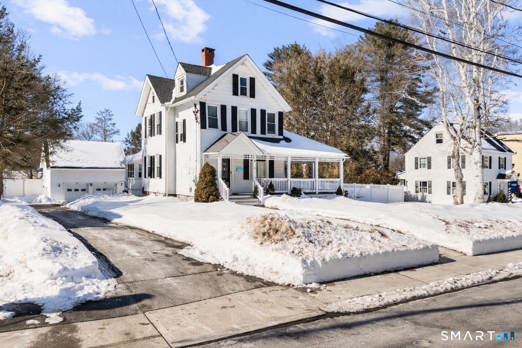 Welcome to this charming farmhouse colonial at 26 Orchard street, featuring a classic wrap around porch in a quiet, sidewalk-lined neighborhood-perfect for daily walks, or jogs. The park is just a short walk away along with convenient access to shopping, dining, and entertainment. This lovely home offers 3 bedrooms and 2.5 baths with rich, dark chestnut flooring throughout, detailed crown molding, & beautiful built-ins that showcase timeless character. Storage is plentiful with a walk up attic, multiple closets, & a large 2 car detached garage with an expansive loft space above. The level yard is fully fenced in, ideal for pets, play, and entertainment. A wonderful opportunity to enjoy classic charm, modern updates, & a neighborhood designed for easy everyday living.