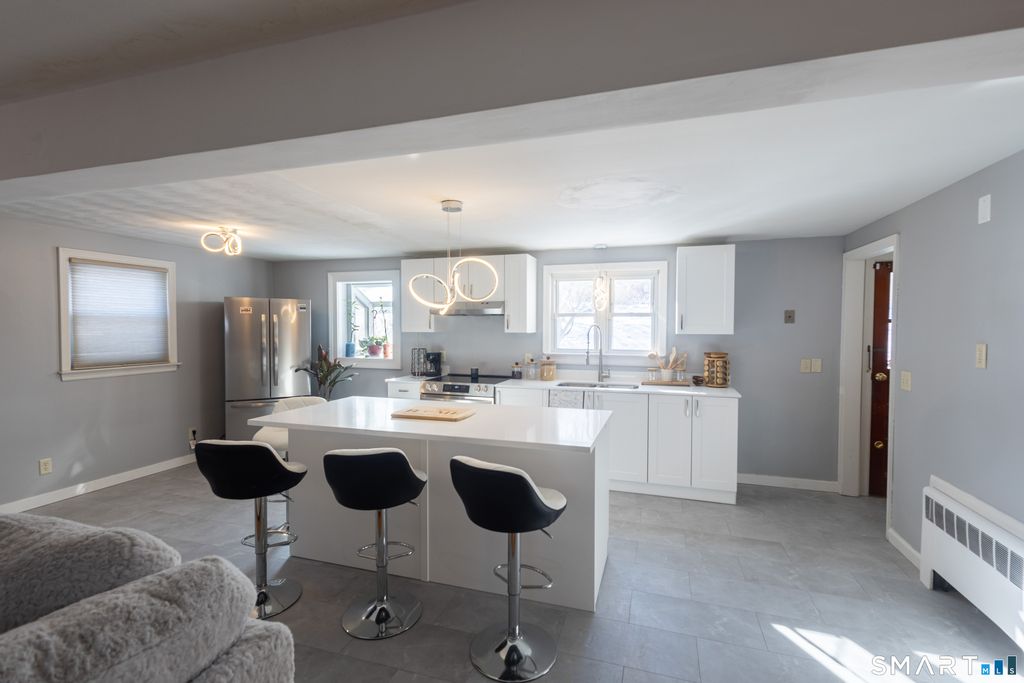 Move in ready 2 bedroom ranch ideal for first time buyers or downsizers. Newly renovated and remodeled open concept design, featuring new quartz countertop and island with seating, and new cabinets. This 960 sq foot home offers easy one level living, a full bath, and 2 generously sized bedrooms. A heated sunroom provides versatile year round space to enjoy the outdoors even on those days you don't to be outside! Also featured is a full sized unfinished basement just waiting for your touch, or a perfect space for storage. Enjoy a beautifully sized yard with easy maintenance. Come check out this thoughtfully updated, charming and welcoming home and make it yours!