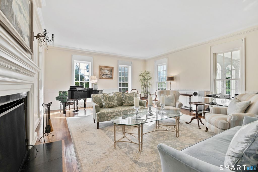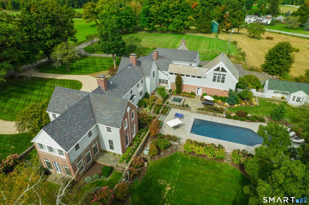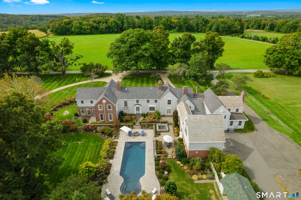 Broadview Estate - A masterpiece in colonial revival design -Perched gracefully on the gentle hilltops of Middlebury! The Cameron Clark design is well preserved and displays a high quality of workmanship and materials, as well as the gracious proportions and classically inspired details inherent of the colonial revival. This residence is one of the finest examples of this style. Together the house and related garden cottages, grounds and surrounding landscapes of fields and woodlands, drape across the gentle hilltops of Middlebury with magnificent vistas east, west and north. It constitutes one of the most beautiful and historically significant properties in the area. The estate encompasses the seventeen room main house and three guest cottages: converted stables with unique industrial accents, classic cape, and pool side studio. The main home features magnificently scaled formal and informal settings, exquisite millwork, hardwood floors. Chefs' quality kitchen with sensational marble, large butler's pantry, breakfast nook, informal dining room, 800 bottle temperature controlled wine room complete this area. This opens to the library and raised paneled great room with vaulted ceilings and stone fireplace. Pass by the sweeping free-standing staircase which leads to the second level and enter the formal dining room and living room both with fireplaces adjacent to a mahogany paneled office. The wonderful conservatory overlooking the beautiful gardens, sauna room, two half baths