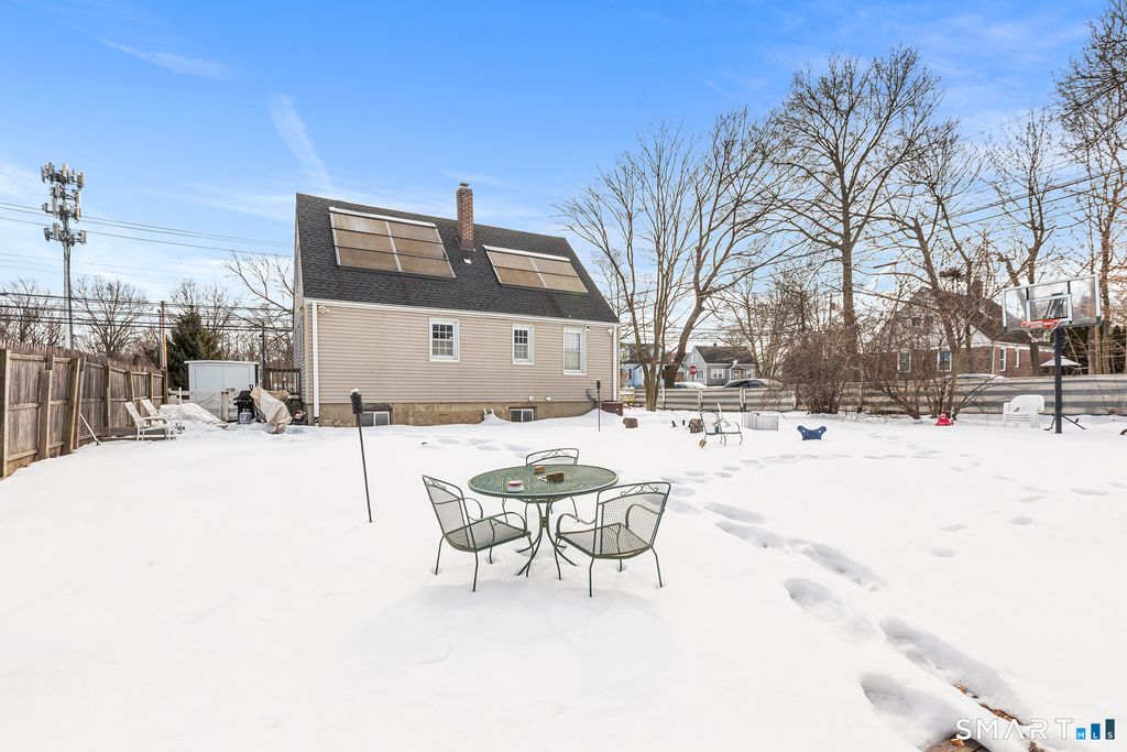 This inviting Cape offers a versatile layout with a spacious living room, kitchen, dining room, bedroom and full bath on the main level with two additional bedrooms on the 2nd floor. The finished lower level expands your living space with a spacious family room featuring cherry Pergo flooring, a full bath, and a flexible room ideal for a home office, guest suite, or potential in-law setup. This home is highlighted by hardwood floors, energy efficient solar panels, and central air for year-round comfort. Set on a beautiful corner lot, the fully fenced yard provides privacy and room to enjoy outdoor living. Conveniently located close to shopping, dining, and major routes, this home blends comfort, functionality, and location.