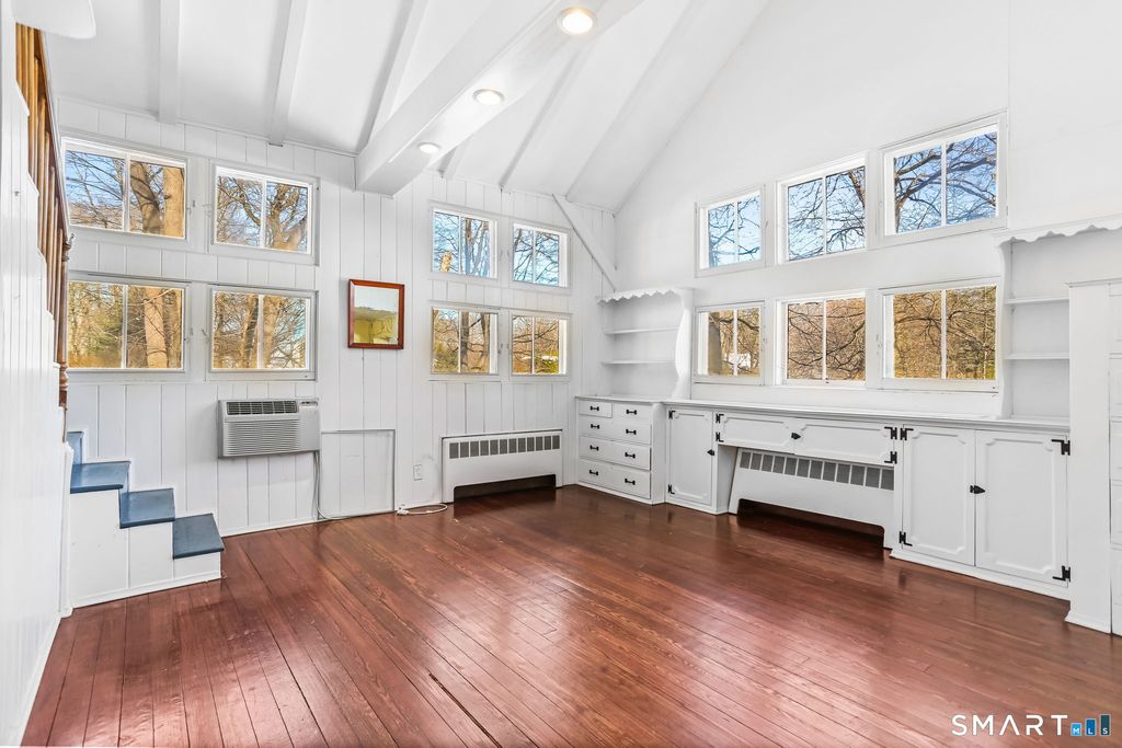 Set in the heart of Westport, 23 Bridge Street offers a rare opportunity to own a character-rich home at a price point that is increasingly hard to find in town. Ideally located just minutes from the Metro-North Railroad train station, this property delivers exceptional everyday convenience for commuters and weekend explorers alike. The home borders over 1.5 acres of town-owned open space, a truly rare feature in this part of Westport so close to the center of town. An in-ground pool adds to the lifestyle appeal (pool photo is digitally rendered). Inside, the home is rich with antique barn-style character dating back to the early 1900s. Signature rooms include a dramatic great room with cathedral ceilings and a striking cobblestone fireplace wall, which flows seamlessly into an enclosed sunroom. At ground level, a walk-out offers exceptional versatility, featuring an additional bedroom, full bath, and partial kitchen. This property presents multiple paths forward: remodel in place, expand, or add an additional level. Plans are available for review, offering buyers a head start on unlocking the home's full potential. Surrounded by luxury shopping, renowned dining, and Westport's elevated lifestyle, this is a compelling opportunity to create long-term value in a premier location. Perfectly positioned minutes from Saugatuck Center, Compo Beach, Longshore Club Park, and downtown Westport-this is historical charm paired with modern convenience, 50 miles from NYC, Welcome Home!