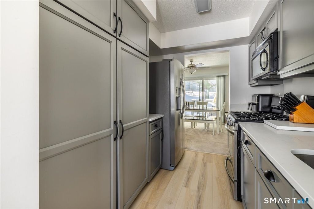 Welcome to Southfield Condo Complex. Tucked away, on the Bethel/Danbury border with sizable space for quiet living, the intimate 17 unit complex affords privacy and comfort. The front door opens to a main level with a generous living room, to dining room, with a powder room and eat-in kitchen around the corner. Newly renovated kitchen, kitchen floors, kitchen lighting and bathrooms, will surely grab your attention. Further continuance up the stairs, yields skylight generously lighting your way to a Master and Junior Suite. Walk-in closet fills the space in the master bedroom suite, in addition to a full bath with a jacuzzi tub, stand-up shower, vanity with storage. Junior suite also has its own bathroom with tub/stand-in shower and vanity. In the lower level, there is a den/extra space that can be used as another bedroom or living space, currently being used as a home office, and additional storage in the closet. Peek-a-boo laundry behind closet doors, an interior access to garage, mechanicals are located just in back of the garage fill the rest of the lower level. Well maintained and gently loved, some updates to internal components of HVAC and brand 2024 new condenser. Main components in furnace replaced in 2024. Service Star maintenance completed over the last three moths for all plumbing, electrical, and HVAC; everything passes inspections, all you have to do is move in.