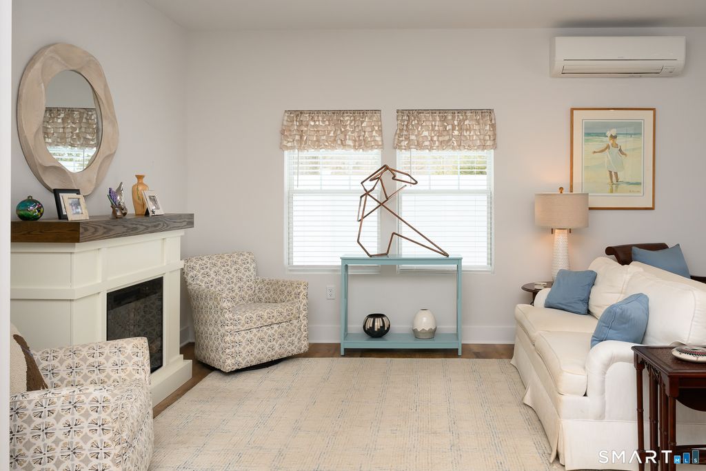 Rare end-unit with a first-floor primary bedroom in East Lyme's newest 55+ community. Just one year young and lightly lived in, this beautifully maintained townhouse still feels brand new. With 2 bedrooms and 2 full baths, it offers an easy, well-designed layout that supports low-maintenance living. The main level features the primary bedroom and a crisp white shaker kitchen with quartz countertops, subway tile backsplash, and a generous island that works just as well for everyday meals as it does for entertaining. A conveniently located laundry area keeps daily routines simple. Upstairs, you'll find a second bedroom, a full bath with a walk-in shower, and a versatile bonus space ideal for a home office, fitness area, or hobby room. Outside, enjoy your private patio. Perfect for morning coffee or casual gatherings with friends. This home includes a private garage and maintenance-free living with professional property management. Ideally located close to restaurants, pharmacies, and grocery stores, and just four miles from downtown Niantic with its beaches, boardwalk, marinas, shops, and waterfront dining. Low-maintenance. Move-in ready. A smart next chapter in shoreline living.