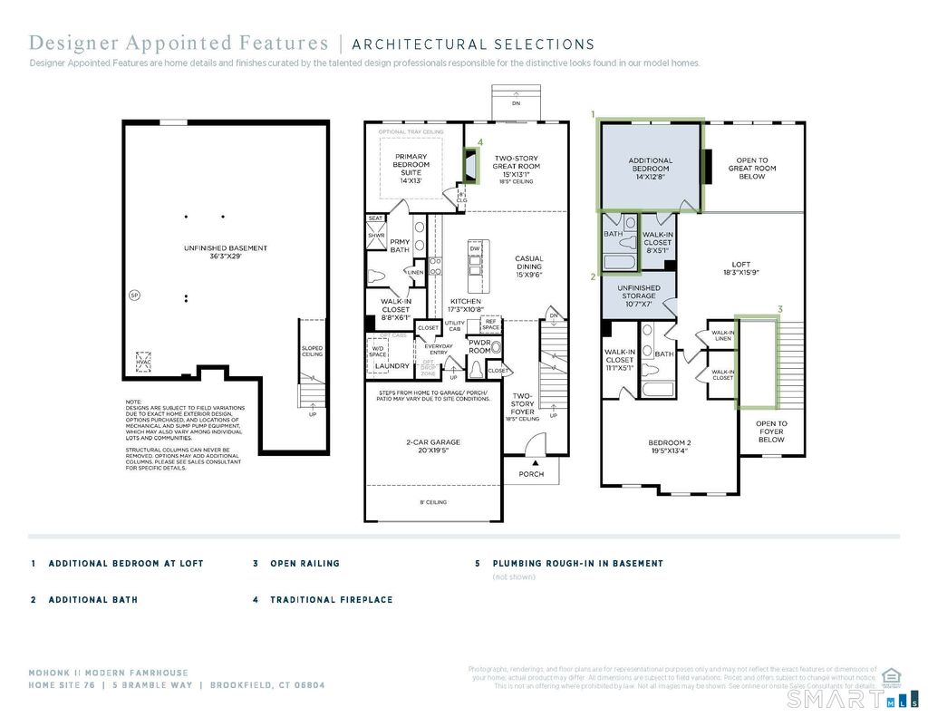 Welcome to the Mohonk II, an exceptional quick move-in opportunity showcasing sophisticated design, thoughtful layout, and timeless style. This beautifully appointed home features a sleek warm contemporary aesthetic with clean lines, bright white finishes, and brushed nickel accents throughout. At the heart of the home, the well-equipped gourmet kitchen offers a large center island with breakfast bar, abundant cabinetry, and a premium KitchenAid stainless steel appliance package, including a five-burner gas range, perfect for everyday living and entertaining alike. The striking two-story great room is filled with natural light and anchored by a gas fireplace and 6' sliding door, creating a welcoming and dramatic focal point. The first-floor primary suite provides a private retreat with an expansive walk-in closet and a spa-inspired bath. Upstairs, additional bedrooms, two full baths, and a versatile loft offer flexible space for guests, hobbies, or a home office. The basement includes rough-in plumbing, providing future potential for added living space. Best of all, this home will be ready for you to move in for Spring 2026!