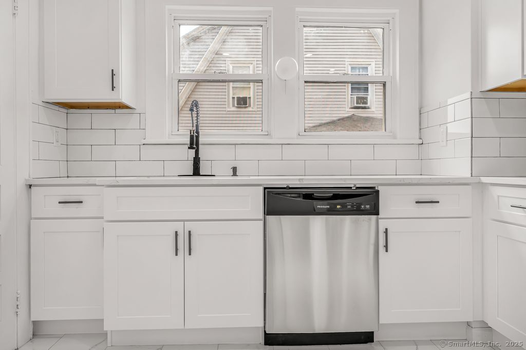 Welcome to this stunningly remodeled colonial where modern elegance meets classic colonial charm. This home boasts three generous bedrooms and one and a half bathrooms, providing ample space for comfortable living. Enter into a bright and inviting atmosphere, highlighted by a stunning eat-in kitchen featuring beautiful tiled floors, custom shaker cabinets, sleek quartz countertops, and brand new stainless steel appliances. The living room and formal dining room are ideal for entertaining and family gatherings. Each room features new light fixtures that add a modern touch and illuminate the space beautifully. Refinished hardwood floors, all new hardware and freshly painted throughout. Convenience is key with a laundry area located on the upper level. Fenced in yard, detached two-car garage. This home is truly a must-see.