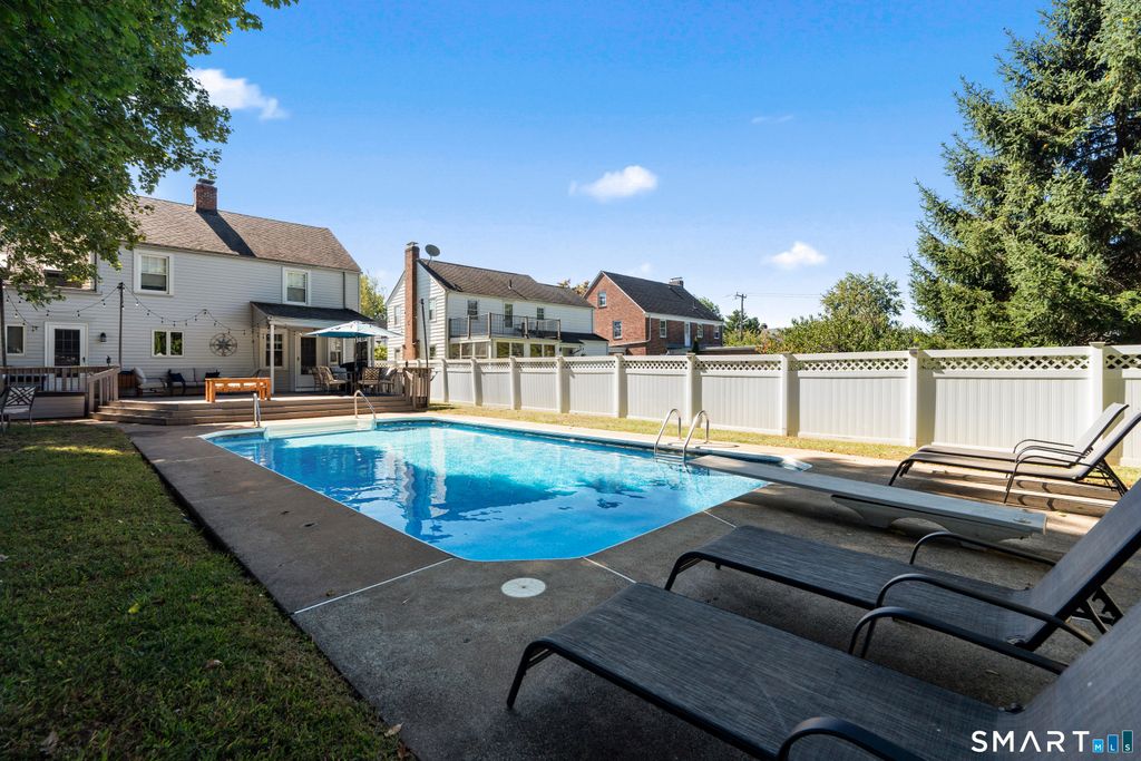 Welcome to 372 Fern a charming Colonial that is turn key ready for you! Spoiler alert, there's a beautiful inground pool! A light & bright foyer welcomes you and flows into the living room that features hardwood floors, a wood burning fireplace and arched door way that lead to the dining room with built-ins for your beverage choices. The updated kitchen features newer slate color appliances and has easy flow to the expansive rear deck and gorgeous in ground swimming pool. The 1st floor bathroom, access to the attached garage and basement with laundry and storage space round out this level. The second floor features 4 nicely sized bedrooms with one smaller making it ideal for a home office, nursery or whatever your needs may be. With an updated full bathroom with tub-shower combo the 2nd floor is terrific. A walk-up to the unfinished attic provides more storage possibilities. Newly painted with current on trend colors, light fixtures, ceiling fans, skylights, updated windows, leased solar panels and central air checks all of the boxes! Summer is coming and this home provides wonderful entertainment possibilities from the expansive deck, serene pool and fully fenced rear yard. Look forward to floating aimlessly, yard games and firing up the grill! Enjoy a stroll to vibrant West Hartford Center & Blue Back Square for entertainment, dining and shopping! Fantastic location to town parks, schools and so much more. Welcome home to 372 Fern.