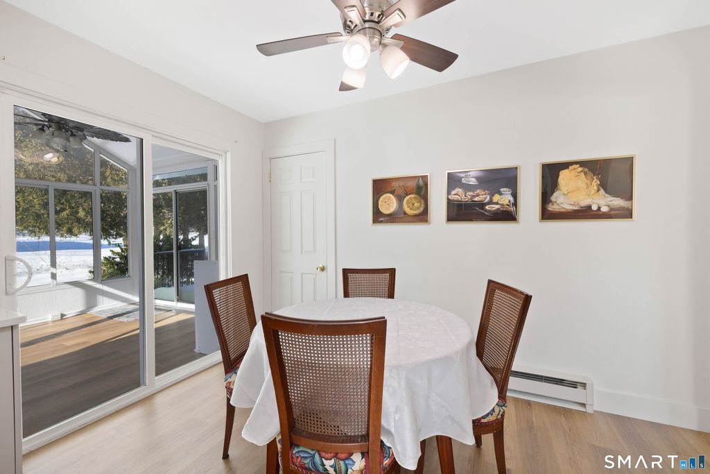 Tucked away on a quiet cul-de-sac, this beautifully updated 3 bedroom, 1.5 bath ranch offers comfortable one-level living with intentional upgrades throughout! The brand new designer eat-in kitchen features quartz countertops, a farmhouse sink, stainless steel appliances, unlacquered brass cabinet hardware and durable luxury vinyl plank flooring that seamlessly continues into the sunroom, creating a welcoming dining and entertaining space. The primary bedroom includes a private half bath, while the full hallway bath has been tastefully updated with a granite countertop, tiled walls, and new light fixtures. Refinished hardwood floors add warmth throughout the home. Step outside to the rear deck overlooking the backyard, ideal for relaxing or entertaining. Additional highlights include a tankless on-demand hot water heater, a three year old roof, a spacious yard, storage shed, and a driveway with parking for up to four vehicles. Each spring, established perennial gardens provide popping curb appeal, adding charm and color to the property. This home offers close proximity to Route 32, I-395, Route 2, and Route 12, making commuting a breeze. Enjoy easy access to shopping, dining, and entertainment, including the prominent Mohegan Sun Casino. Check out those pics and schedule your private showing today!