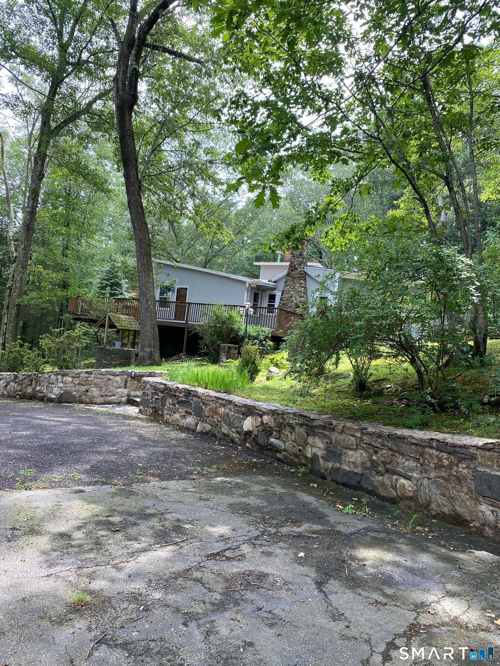 Lovely private Easton wooded setting overlooking Morehouse Brook. Large level parking that allows truck turn around. Lower driveway access to Brook and lower level entrance.Close to Parkway Rt15 former exit 46 1 mile away.