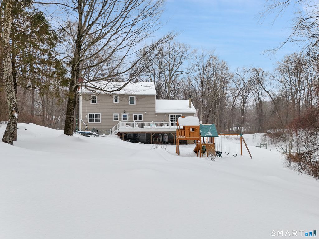 Welcome to 349 Mountain Road, a charming Wilton Colonial set on a private cul-de-sac and over 2 acres of serene grounds. A light-filled floor plan features a butcher block kitchen that flows into a spacious family room with a wood-burning stove. The home offers a formal living room with a wood-burning fireplace, formal dining room, a primary suite with refreshed Carrara marble bath, and three additional bedrooms. A finished lower level adds flexible living space, while outdoor highlights include a vegetable garden and three-stall barn and a newly added patio with firepit and swing. Enjoy easy access to Ridgefield, Georgetown, and Westport-plus Wilton's beloved local coffee shops, dining, and amenities-all within Wilton's top-rated school district.