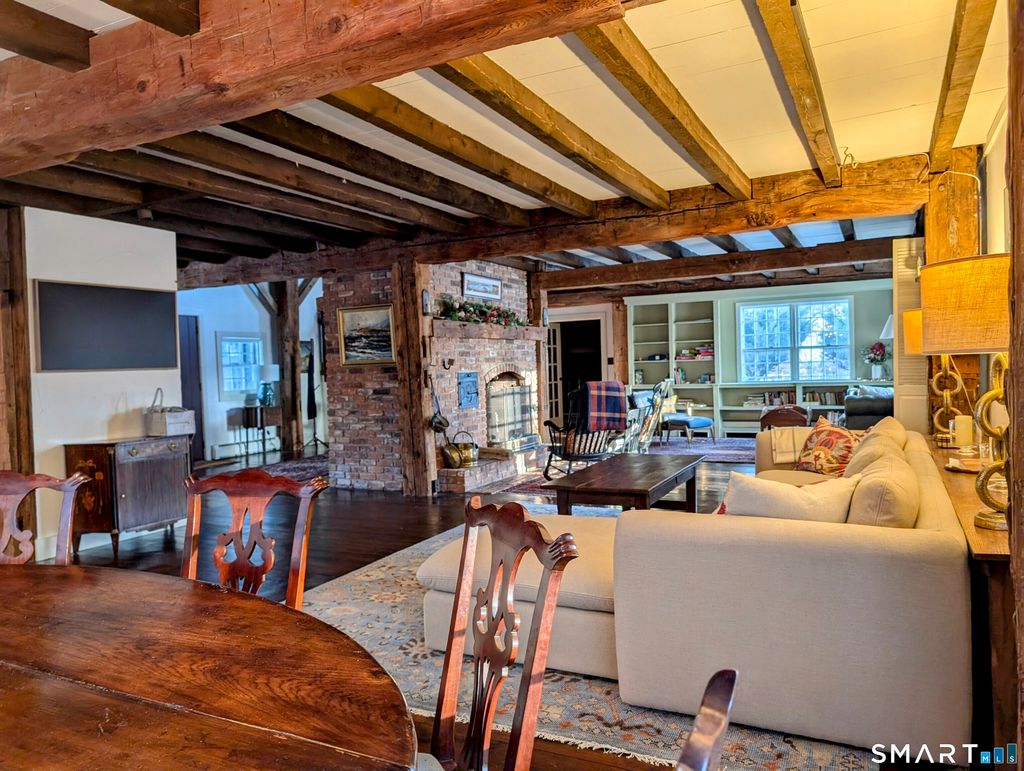 Spend the season in Litchfield County during one of the best ski winters in more than a decade, in a distinctive Connecticut barn-style home set in a quiet corner of Washington Depot. The original barn exterior is rustic, while the interior is warm, understated, and chic, with exposed beams, wide-plank floors, and a wood-burning fireplace at the center of the main living space. First-floor primary suite with fireplace, with two additional bedrooms and a full bath upstairs. Snow-covered fields and long winter light filtering through pine trees create a postcard-pretty setting, making it an easy place to slow down and settle in. Country roads lead directly to the Bantam River for crisp walks on crystal-clear, blue-sky days, while town amenities remain close at hand. New Preston is just five minutes away for casual, tavern-style spots, and great shops. Litchfield is ten minutes away, offering a wide range of dining, shopping, and cultural options. Woodbury-also ten minutes away-has become one of Connecticut's strongest food destinations, with a growing market and restaurant scene. Mohawk Mountain is approximately 30 minutes away for skiing. A rare opportunity to enjoy a rural retreat with excellent access to some of the region's best towns. Available for flexible terms-please inquire.