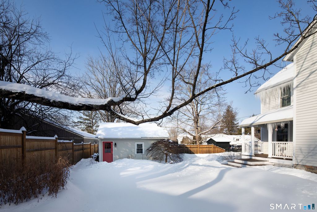 This charming colonial is ideally nestled in the center of Sharon and filled with warmth and character. Sun-drenched rooms, an efficient kitchen with wall oven and cooktop, and inviting built-ins in both the den and dining room (with elegant glass doors) and half bath on the first floor create a home that's as functional as it is welcoming. Upstairs offers three bedrooms, a stackable laundry unit, and a full bath. Outside, enjoy a perfectly sized yard with a patio and separate smaller grilling patio, a quaint porch, and a pea stone driveway with a Belgium block entrance. Central air, town water and sewer, and a two-car garage complete this special property. All room sizes are approximate.