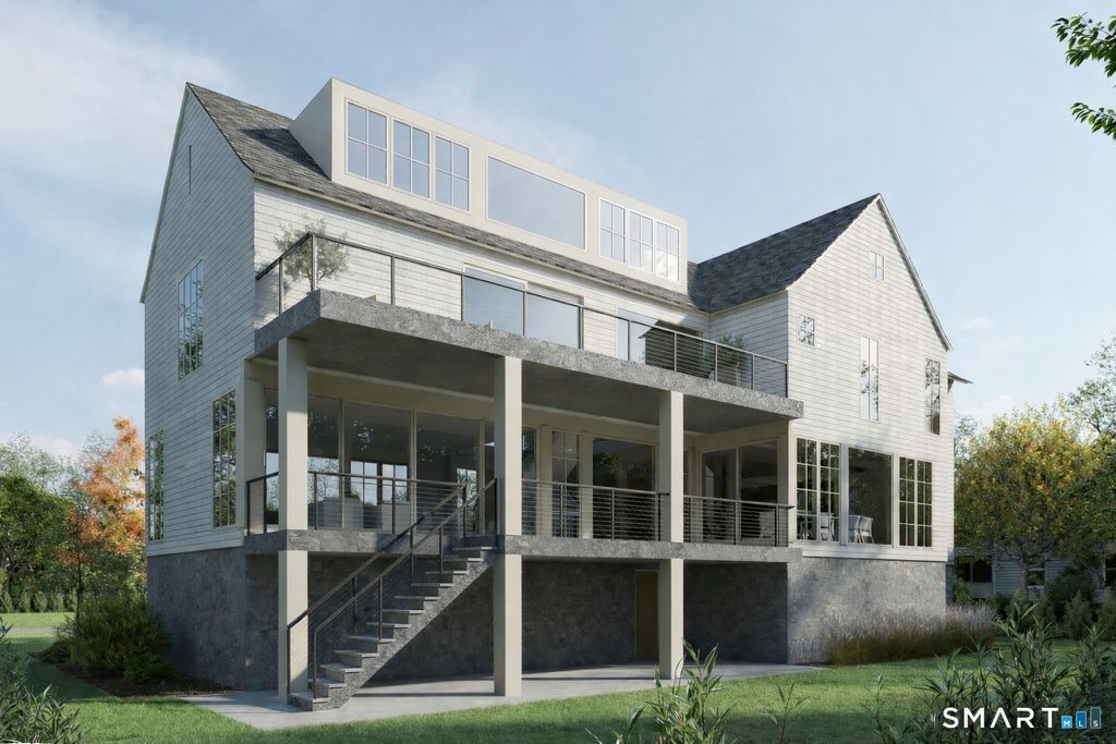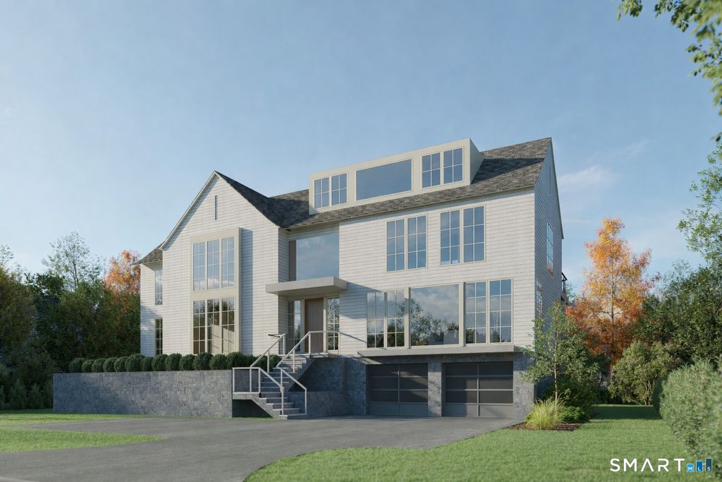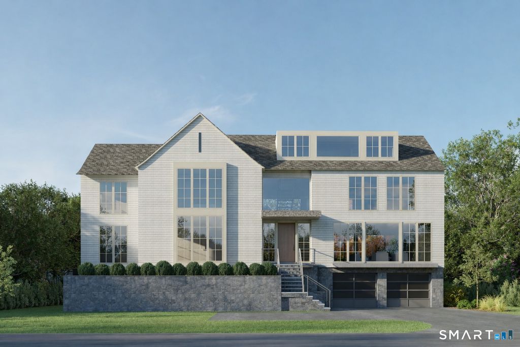 Stunning new construction, currently under construction and scheduled for completion in late summer 2026. Blending signature modern architecture with timeless New England coastal charm, offers 4-5 bedrooms, all en suite, and showcases European windows. The open-plan living spaces are expansive and light-filled, while still providing multiple intimate areas for relaxation and entertaining. Full-height sliding doors lead to decks on both the first and second floors, creating seamless indoor-outdoor living. The kitchen will feature custom white oak cabinetry, and all bathrooms are bespoke, reflecting the elevated level of craftsmanship throughout. The first floor includes a private home office or optional bedroom suite, providing flexibility for modern lifestyles. The third floor offers an open-plan space with a full bathroom - ideal for a media room/ studio/guest retreat with views of the Long Island Sound. The lower level includes a two-car garage, generous mudroom, and substantial storage. An elevator shaft has been incorporated into the design and may be completed for buyers who desire full elevator access. There is still time for a purchaser to personalize select finishes. Situated on a cul-de-sac along the Long Island Sound within a private association, and just moments from Tod's Point, Old Greenwich Village, OG Elementary, and Metro-North train, this is a rare opportunity to own an exceptional new construction in one of Old Greenwich's most desirable coastal locations