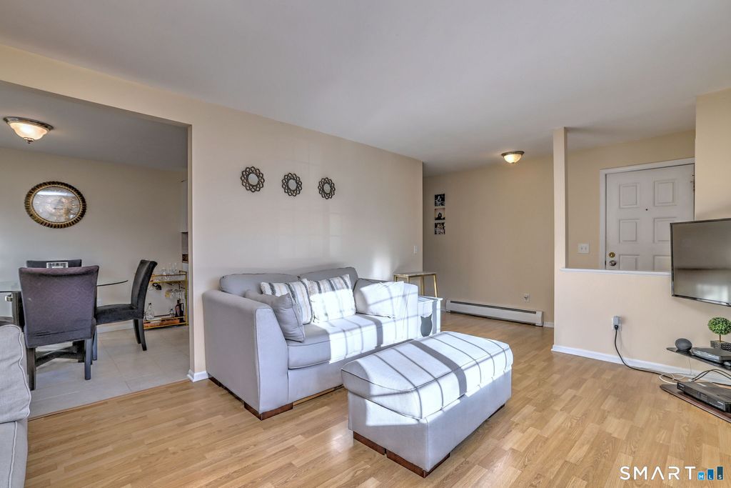 First-floor end-unit comfort with a quiet, private feel in the sought-after Foxwood Condominium Complex. The bright, open living and dining areas are ideal for both everyday living and entertaining. The kitchen is well appointed with granite countertops, stainless steel appliances, and ample cabinet space. The bedroom features a walk-in closet and a peaceful outlook. Full bath and in-unit washer and dryer complete the home. Low common charges include heat and water. Owner-occupied community with private basement storage and one pet per unit permitted. Residents enjoy amenities including a pool, tennis courts, bocce court, and picnic area. Conveniently located near major highways, downtown Milford, Metro-North, and the area's beautiful beaches.