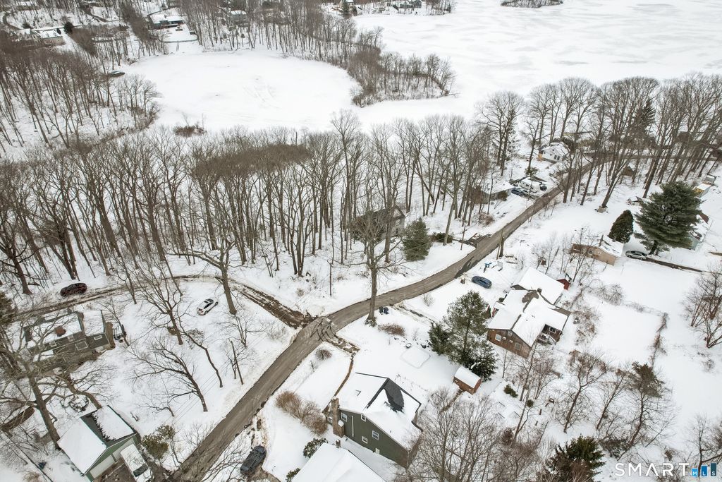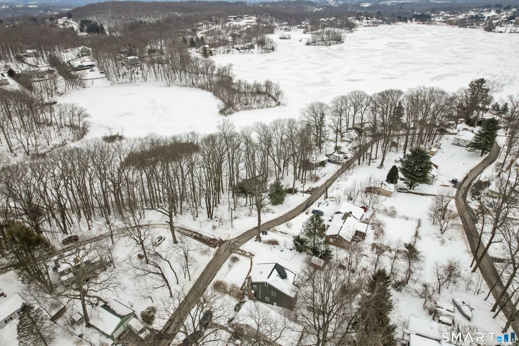 Charming two-bedroom Colonial tucked away in a sought-after private area of Watertown with picturesque views of Lake Winnemaug. Step inside to a cozy living room featuring a beautiful stone, wood-burning fireplace, perfect for relaxing evenings. The bright kitchen offers pine cabinetry, stainless steel appliances and luxury Formica countertops. The main level is complete with a laundry area and full bath. Upstairs, you'll find two nicely sized bedrooms and an additional full bath. Hardwood flooring throughout both levels. This home features propane-fueled forced hot air heat with central air conditioning, along with numerous updates including a newer well pump and holding tank, propane furnace, central A/C system, electrical service, plumbing, roof, and windows, plus skylights throughout. Enjoy the added bonus of a finished outbuilding offering extra heated recreational space. Low taxes complete this exceptional opportunity. MOVE QUICK!