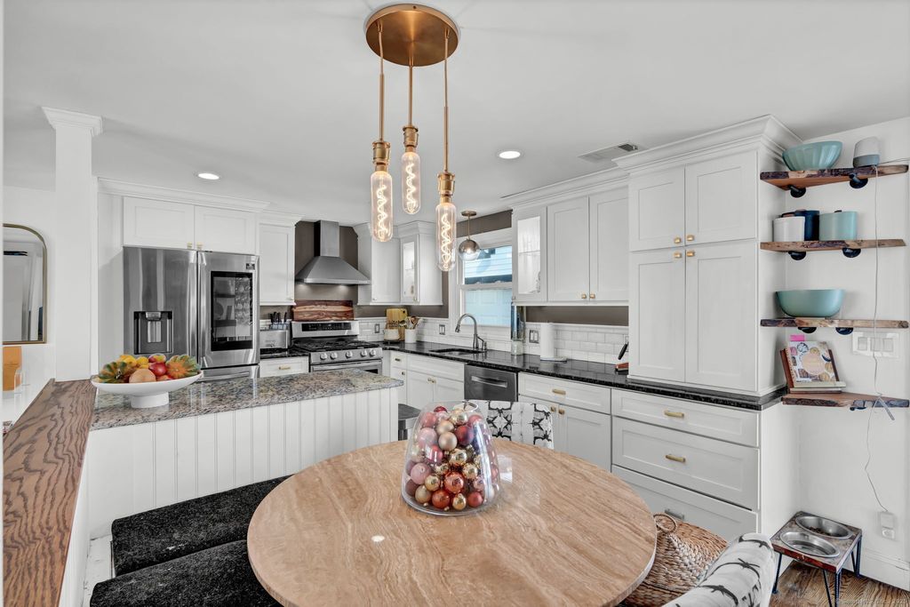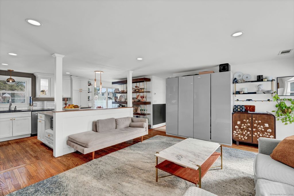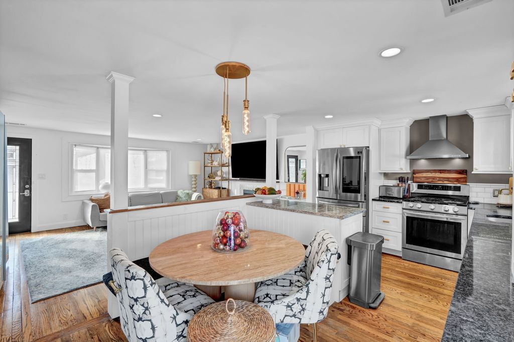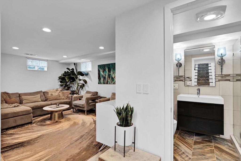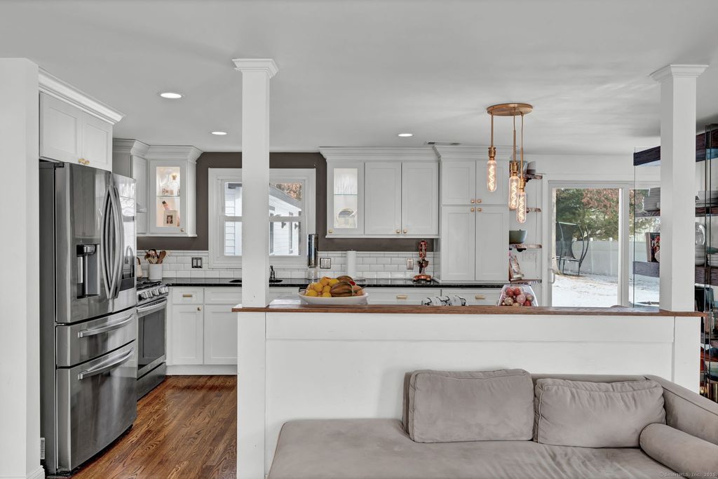 Beautifully renovated 2,000+ sq. ft. ranch offering an open-concept design and stylish updates throughout. The kitchen features white cabinetry, granite countertops, tiled backsplash, stainless steel appliances, and built-in banquette seating, opening directly to the living room with hardwood floors and a marble-finish fireplace. The fully finished lower level adds exceptional versatility, including a walk-in closet, gym area, play or entertainment space, generous storage, and a laundry area complete with sink and folding countertops. Exterior highlights include a 1,000 sq. ft. paver patio with firepit and an oversized, newly constructed two-car garage. Ideally situated near major highways, the Farmington Canal Heritage Trail, and top-rated schools. All applicants must complete tenant screening through SoftScreen, including credit, eviction, and background checks.