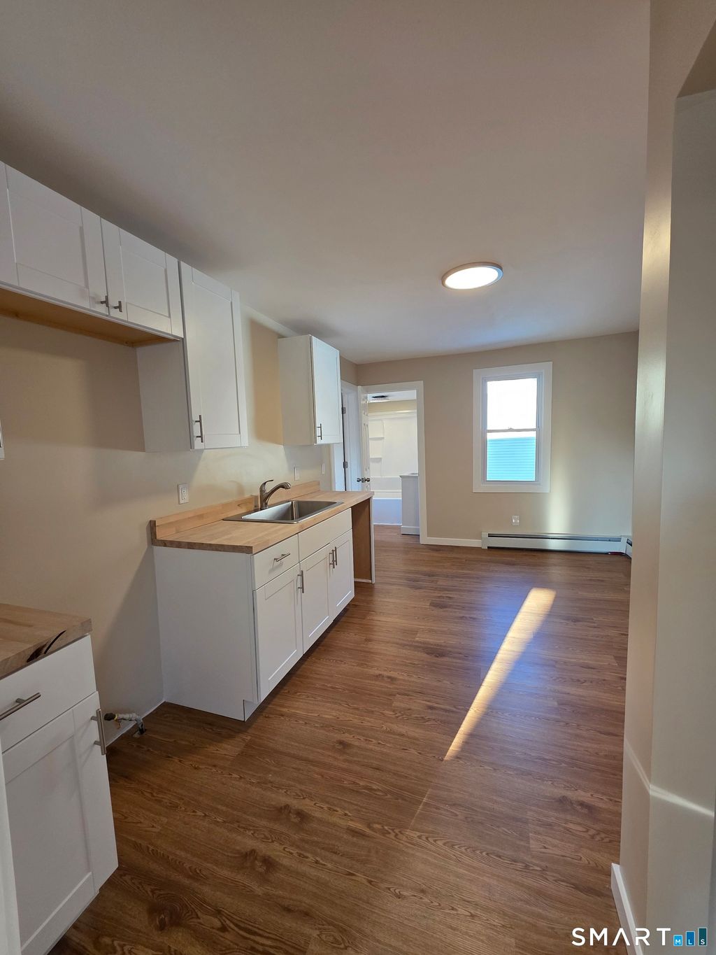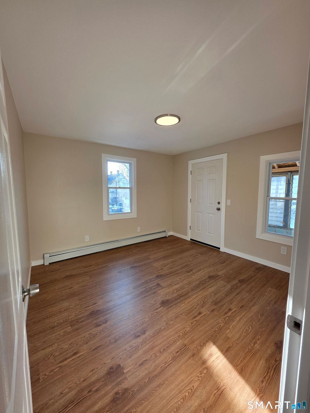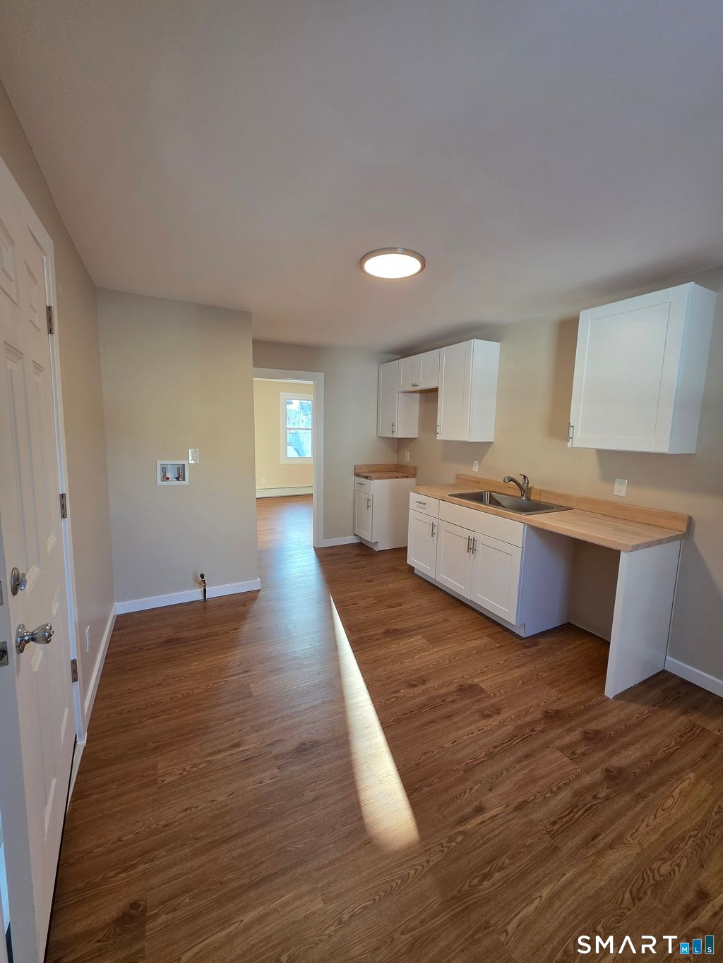Completely renovated second floor two-bedroom apartment featuring new flooring throughout, an updated kitchen, and a newly renovated bathroom. Washer and dryer hookup located in the kitchen for added convenience. The unit will be ready for March 1st occupancy. Street parking with a one-bay garage available to rent for an additional $100 per month. Monthly rent is $1,850; tenant is responsible for all utilities. Apartment is currently undergoing final renovations.