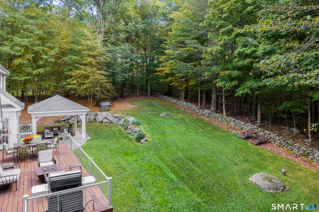 Stunning and fully renovated, this 4 bedroom Colonial is nestled within the highly sought after Bethany Farms Subdivision on a private 1.66 acre lot framed by gorgeous stone walls and mature plantings. The moment you step inside, the craftsmanship is unmistakable-custom trim, rich millwork, and high quality finishes define every room. At the heart of the home is an exceptional chef's kitchen, beautifully redesigned with custom cabinetry, quartzite countertops, a spacious center island, a charming farm sink, and top tier appliances including a SubZero refrigerator, Wolf double ovens, and a gas range. An inviting eat-in area and a separate pantry/laundry room add both comfort and convenience. The open floor plan creates effortless flow for entertaining, whether indoors or out. The family room, anchored by a fireplace, opens through French doors to a premium Ipe deck with sleek cable railings. Just off this space is a versatile room ideal as a home office, recreation room, or even a potential first floor bedroom. Upstairs, the luxurious primary suite offers a true retreat with its own sitting room, a generous walk-in closet, and a beautifully renovated marble bath featuring a soaking tub, stall shower, and double vanities. Three additional well sized bedrooms and a renovated hall bath complete the second floor. The lower level adds approximately 1,000 sq ft of additional living space, including a recreation rm, theatre rm, den & office area-perfect for work, play, or relaxation