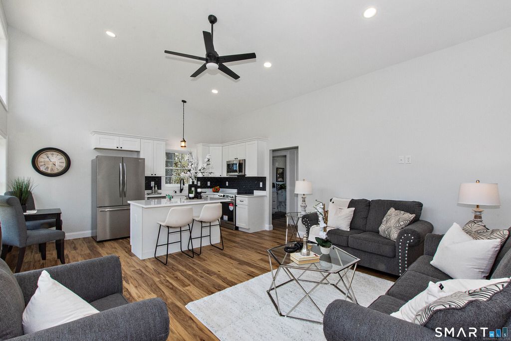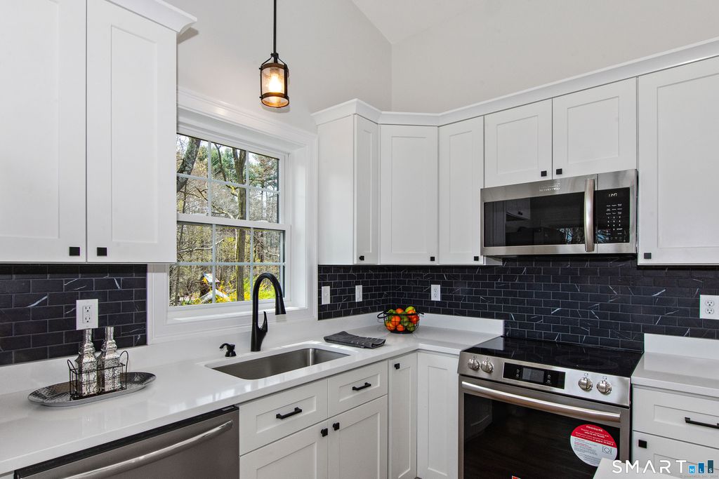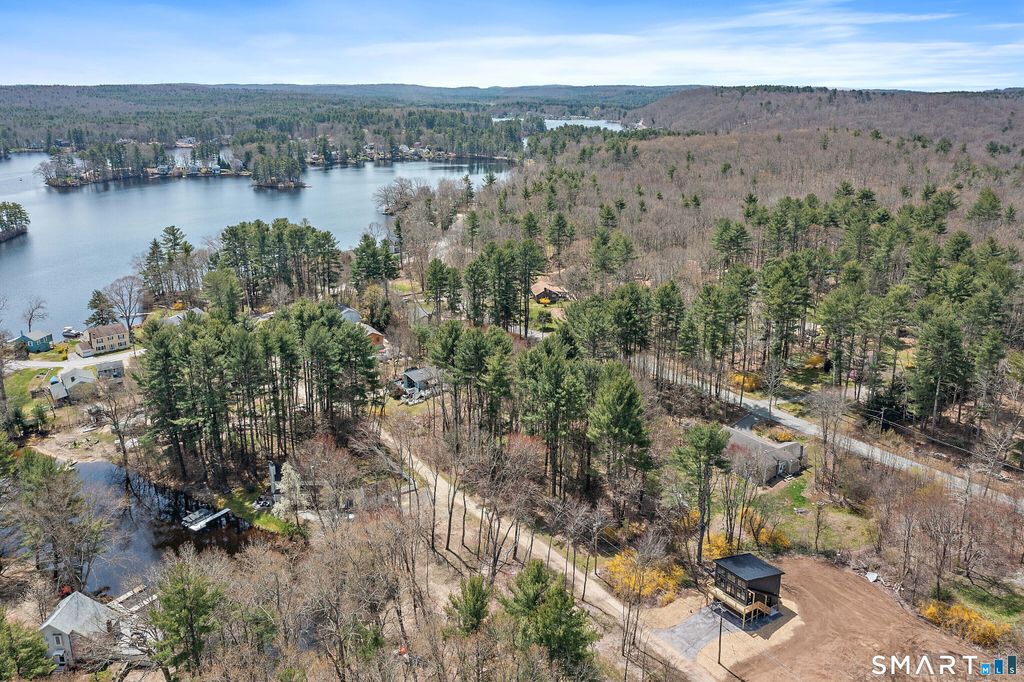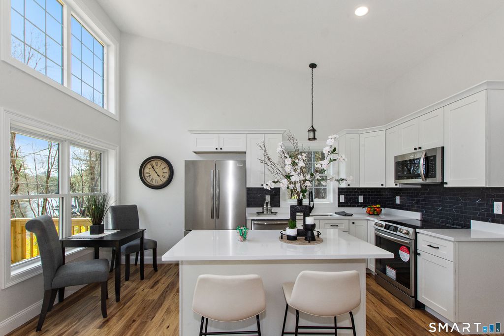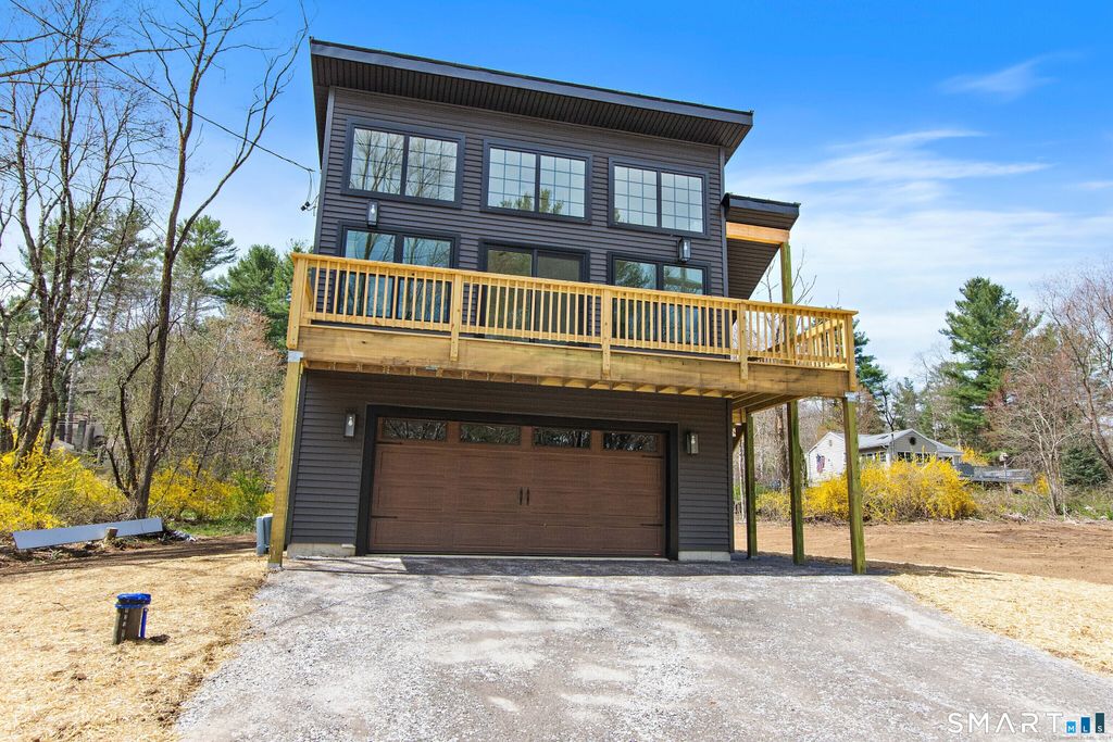 Stunning 2-year-old contemporary offering an open, sun-filled floor plan designed for modern living. Oversized windows throughout capture beautiful views of Lake Quaddick, filling the home with natural light and a seamless connection to the outdoors. The gorgeous kitchen features crisp white cabinetry, granite countertops, a center island, and comes fully applianced, making it perfect for both everyday living and entertaining. The open layout flows effortlessly into the living and dining areas, all highlighted by clean lines and a bright, airy feel. Additional features include air conditioning, a spacious deck ideal for relaxing or hosting while enjoying the lake views, and a two-car garage located underneath for convenience and storage. A rare opportunity to own a nearly new home with contemporary style and scenic surroundings.