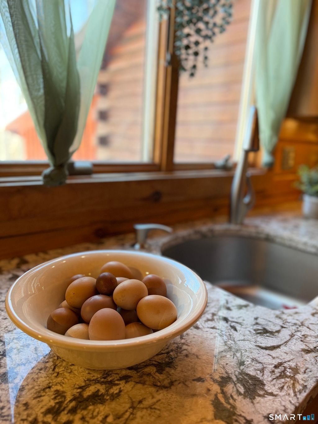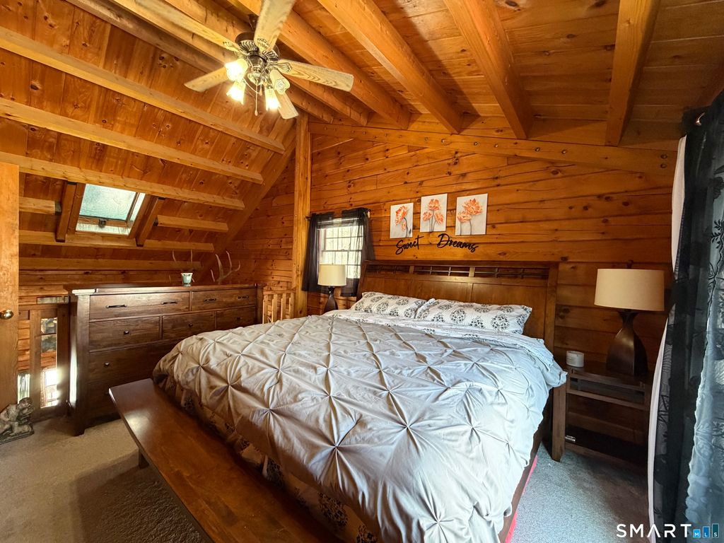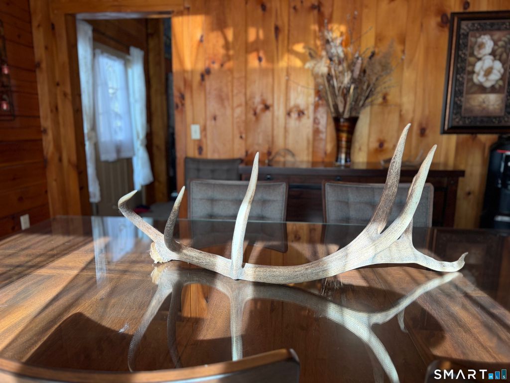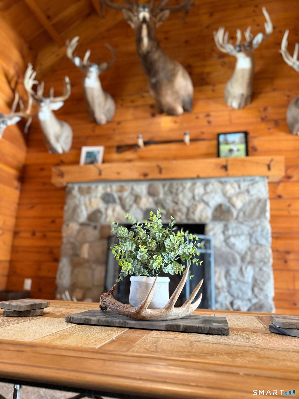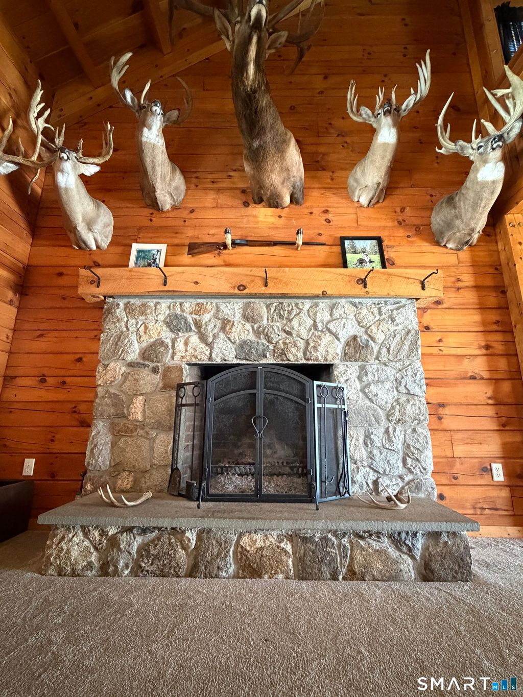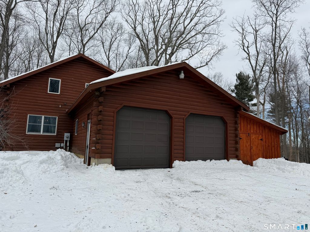 Tucked away at the end of a quiet, scenic dead-end road, this charming log cabin offers the perfect blend of privacy, comfort, and rustic charm. Surrounded by nature, it's a peaceful retreat where wildlife roams freely and mountain sunrises paint the sky, best enjoyed from the expansive two-story decks. A welcoming screened-in front porch invites you to relax and take in bug-free summer evenings, while mature apple trees rest beneath the snow, ready to bloom and bear fruit in season. Inside, the home is warm and inviting, anchored by a stunning fieldstone fireplace-perfect for curling up with a good book and watching the snowfall during classic New England winters. The updated kitchen features granite countertops and stainless steel appliances, offering modern convenience while maintaining the cabin's cozy character. The loft-style primary bedroom overlooks the living room below, creating an open yet intimate feel, and opens to a private deck with a hot tub-an ideal spot to unwind under the stars. An attached two-car garage has been recently refreshed with upgraded flooring, and the home is equipped with a newer furnace, central air, and hot water heater installed in 2021, along with a mobile generator hookup for added peace of mind. Laundry is conveniently located on the main level, making everyday living easy and comfortable. A true rustic escape-quiet, cozy, and surrounded by nature.
