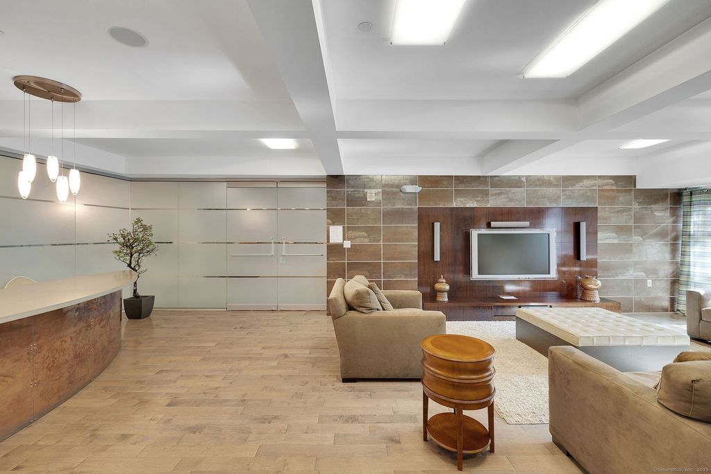 Convenience & sophisticated style is what you get with this ultra-chic 2 bedroom, 2 full bathroom condo located in a private concierge building downtown Stamford. Enjoy the open floor plan, 10-11ft soaring ceilings, and large-pane oversized windows offering gorgeous panoramic sunset views overlooking the city. Hardwood Floors throughout, expansive rooms and the ultimate dream kitchen featuring custom white shaker style cabinets, quartz countertops and Wolf / Sub Zero appliances. Absolutely spectacular primary bedroom with huge walk-in custom closet and spa inspired bathroom with double sink vanity, stall shower, and built-ins. Additional features include parking garage with two reserved spaces, fitness center, temperature controlled wine cellar and lounge/party room perfect for holiday hosting or weekend entertaining.