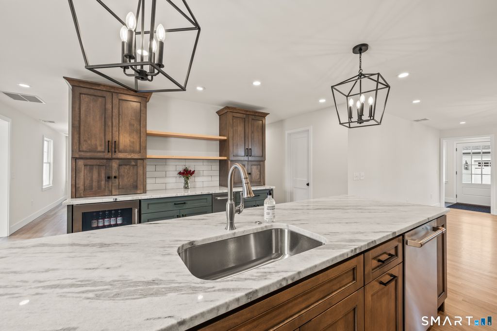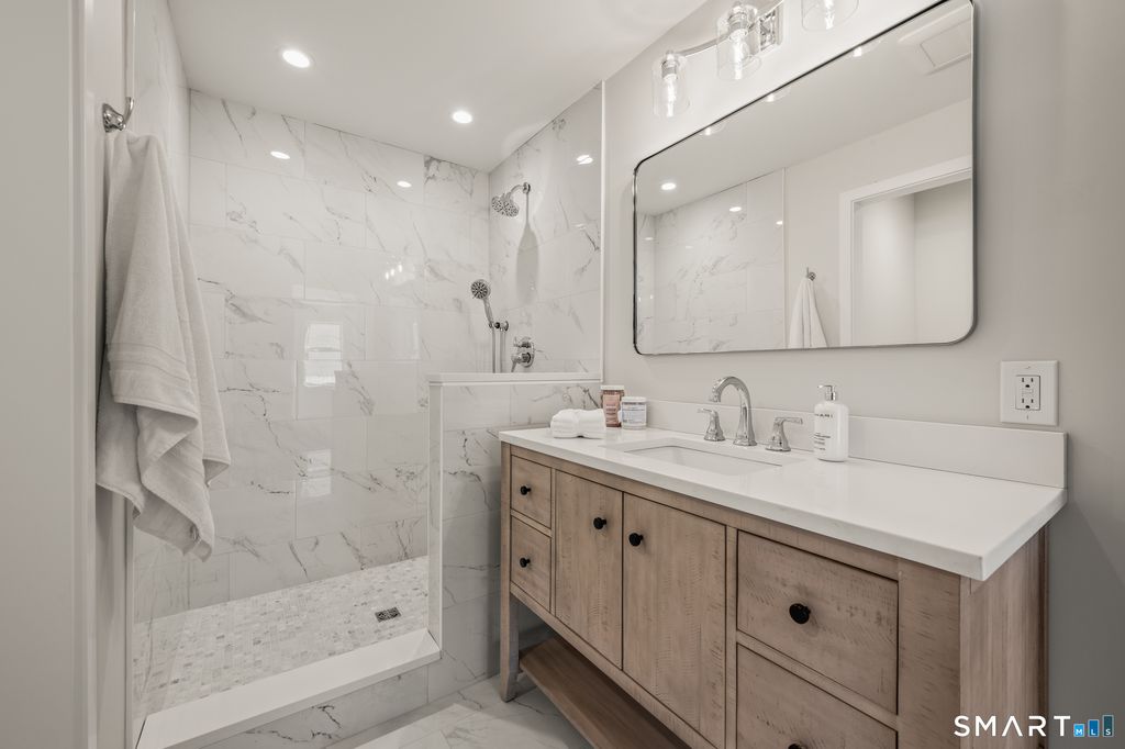 Welcome to this exceptional, completely refinished Cape-style home in the heart of West Hartford & only steps from the shops, dining & energy of The Center. 3,200sqft thoughtfully designed by builder-owner, this home blends classic charm w/high-end finishes & modern functionality. A standout feature is the 1stflr primary suite making it a true one-level living. Serene retreat includes 2 walk-in closets & attached spa-like bath w/upscale finishes, creating a space to relax & recharge. 1stflr laundry adds convenience. Heart of the home is the luxury kitchen, designed to impress w/premium finishes & seamless flow into the main living & dining areas. Open flr plan filled w/natural light ideally for both entertaining & comfortable daily living. Just off the back entrance a custom-designed mudroom provides smart, stylish organization for coats, shoes & everyday essentials-perfect for New England living. Outside, enjoy a brand-new, spacious patio ideal for outdoor dining, gatherings or quiet evenings surrounded by new professional landscaping enhancing curb appeal & privacy. Living space continues in the fully finished basement featuring a large living-rm plus 3 additional rooms w/incredible flexibility for a home office, gym, guest space or media room. Completing the home is a new driveway & detached 2-car garage providing ample parking & storage. Turnkey property delivers luxury, thoughtful design & strollable convenience in one of West Hartford's most desirable neighborhood