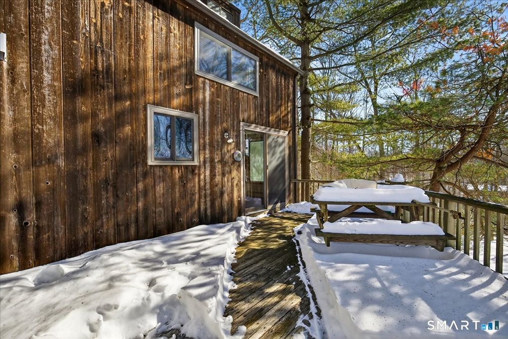 Welcome to 18 Deer Path Lane, where the perfect blend of privacy and modern charm awaits at the end of a quiet cul-de-sac. This 1,212-square-foot contemporary gem offers an elevated lifestyle that truly feels like living in a sophisticated treehouse. From the moment you step inside, you are greeted by soaring windows and stunning panoramic views that seamlessly invite the beauty of the surrounding natural landscape into your everyday living space. The open-concept layout creates an airy, light-filled sanctuary, making it the ideal setting for both quiet relaxation and vibrant entertaining. The home features two comfortable bedrooms and two full bathrooms, but the potential for growth is what truly sets this property apart. A versatile loft area and a partially finished basement provide a fantastic blank canvas, ready to be transformed into a home office, a private gym, or a third sleeping area to suit your specific needs. Outside, the gorgeous views continue to impress, offering unparalleled peace and quiet from every angle. Whether you are sipping your morning coffee on the deck or curling up in the sun-drenched living area, 18 Deer Path Lane is more than just a house-it is a serene retreat designed for those who appreciate nature and modern design in equal measure.