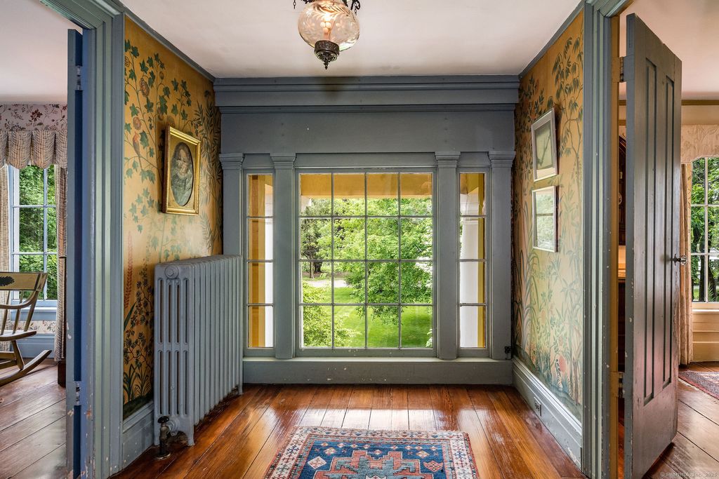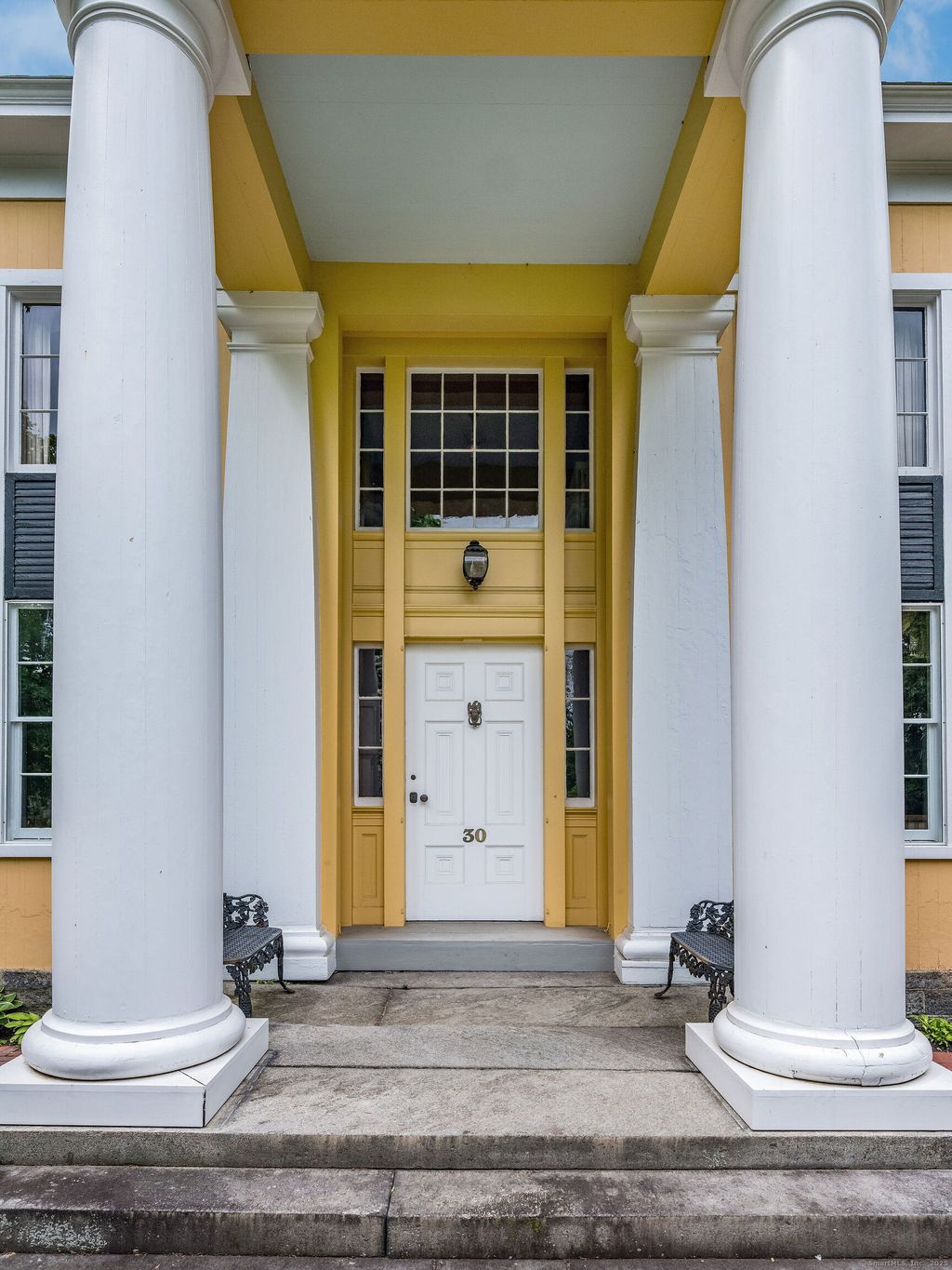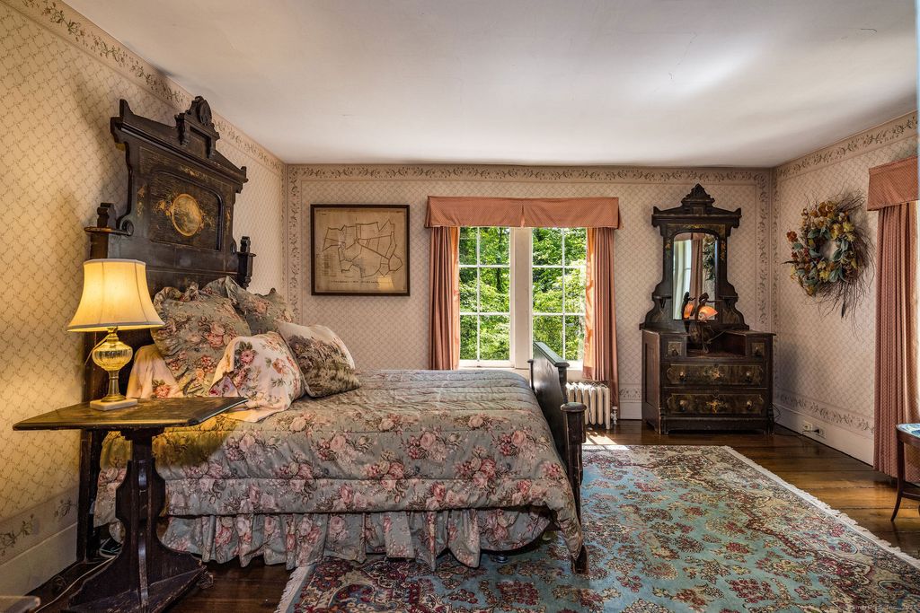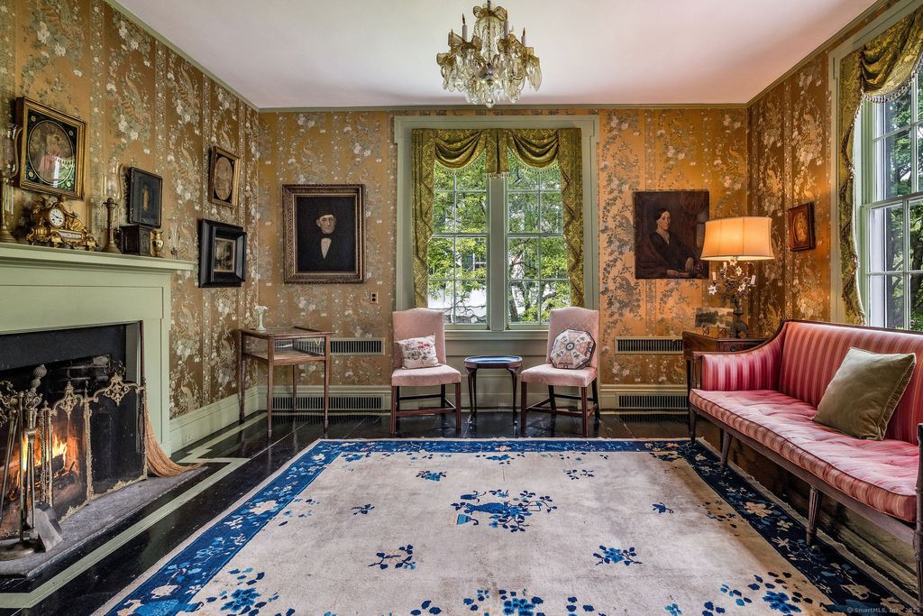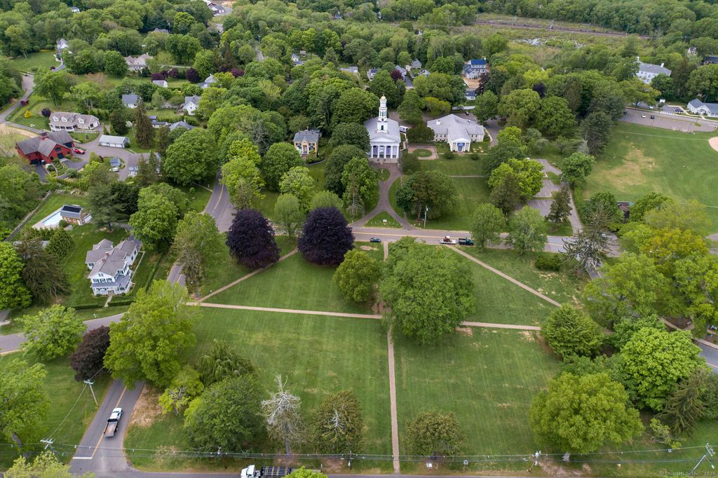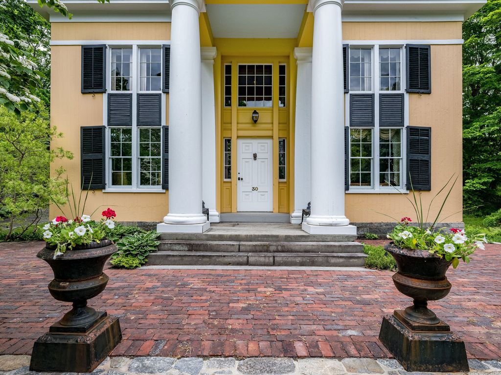 Once known as "Hartsbourne," this storied Madison residence is celebrated for its premier location overlooking the town green and its timeless architectural presence. A true local landmark, the home is distinguished by its striking curved eaved roofline, reminiscent of a pagoda with a unique flat seamed copper roof center. Beautifully aligned with the neighboring Congregational Church, the home shares architectural harmony through its grand columns and elegant two-story shutters. The architect, Mr. Volney Pierce, was commissioned to design this exceptional residence and later the Congregational Church. Inside, the home offers more than 3,900 square feet of living space with soaring 9+ foot ceilings on the main level, 2nd floor with five generously sized bedrooms, five working fireplaces, and the 3rd floor a uniquely large attic with unlimited possibilities. At the back of the property are the outbuildings, a 3 car garage and small coop/shed. "Hartsbourne", has abundant historic character throughout. Set on 1.5+ acres in the heart of Madison's charming village, this is a rare opportunity to own a true piece of local history.