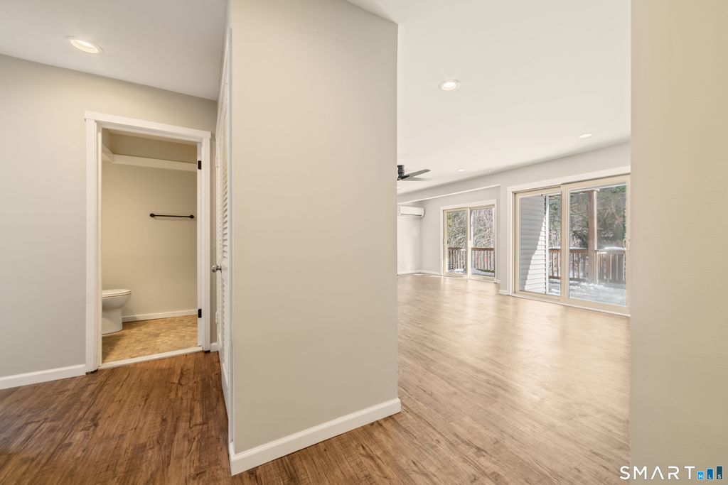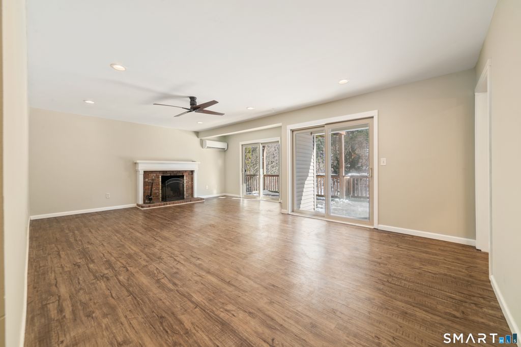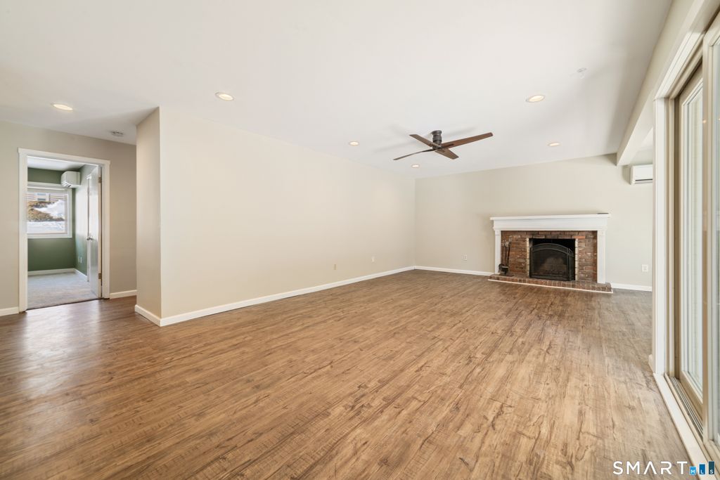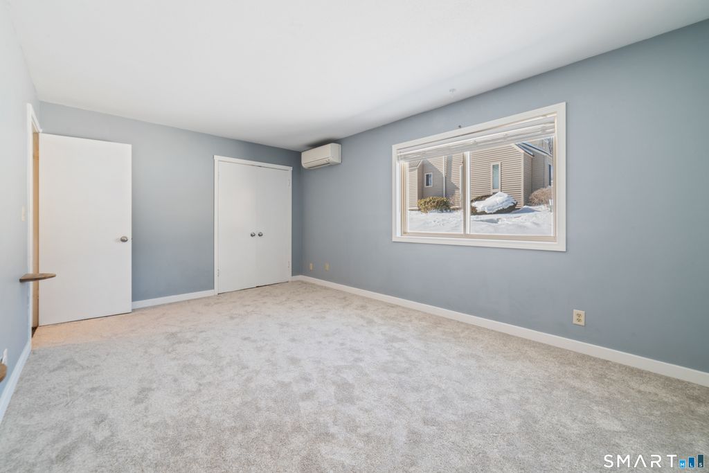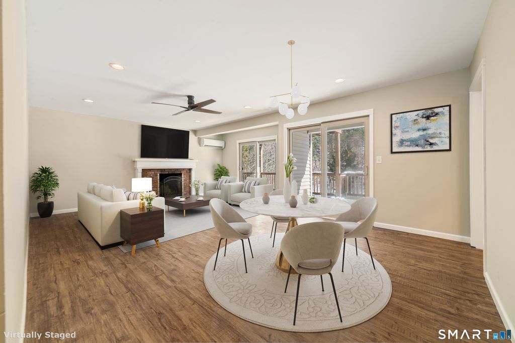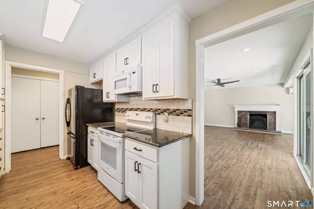 Welcome home to this beautifully updated, turnkey ranch-style condo offering peaceful, low-maintenance living just minutes from Simsbury Center. This single-level unit features two bedrooms and two full bathrooms, with interior stairs leading down to the unit. Freshly painted throughout the living areas and bathroom, the home is truly move-in ready. The updated kitchen includes granite countertops, updated cabinetry, subway tile backsplash, deep sink, dishwasher, microwave and a bright window. The open living and dining area showcases recessed lighting, a fireplace, ceiling fan and two sliders to a spacious deck, filling the home with natural light and creating the perfect space to relax or entertain near a tranquil stream. The primary bedroom offers ample closet space and a full en-suite bath with stand-up shower, while the main bath features a tub. Vinyl flooring runs throughout with new carpeting in both bedrooms. Enjoy year-round comfort with a multi-split system and a heat pump approximately two years old. In-unit laundry includes a new washer. Additional perks include a private garage, additional parking spaces, and access to a beautifully maintained in-ground pool and clubhouse. Conveniently located near downtown Simsbury, the library, scenic Rails-to-Trails bike path, Simsbury Meadows Performing Arts Center, The Coffee Spot, shopping and restaurants, this home offers the perfect blend of comfort, convenience and carefree living.