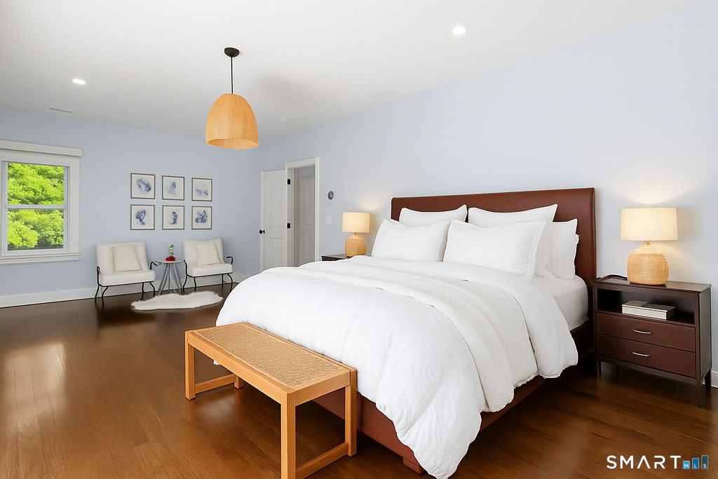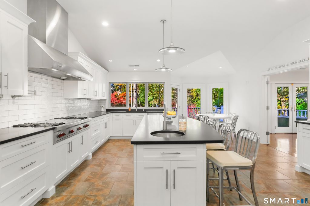 Nestled on a peaceful cul-de-sac in one of Westport's most sought-after WALK TO SCHOOL neighborhoods, this beautifully renovated (2016/2017) 5-bedroom, 4.5-bath home perfectly blends modern luxury with timeless charm. Set on a full acre of manicured grounds, this property offers a serene retreat just minutes from every essential. The open floor plan is designed for effortless entertaining, centered around a gourmet eat-in kitchen with high-end appliances. The main level hosts three bedrooms and 2.5 baths, while the upper level serves as a private sanctuary-a lavish primary suite featuring two expansive walk-in closets, a spa-inspired bath, and a cozy lounge. The light-filled, walk-out lower level is exceptionally versatile, offering a 5th bedroom/gym, full bath, rec room, mudroom, and a dedicated home office with three separate entrances-ideal for remote work. Outside, your personal oasis awaits: a sprawling deck overlooks an inviting in-ground pool/spa, surrounded by lush greenery and a yard perfect for recreation. Unbeatable location within walking distance to Long Lots Elementary, Bedford Middle and Staples High School. Commuters will love being only 2.3 MILES TO GREEN'S FARMS TRAIN STATION. Complete with natural gas, public water, and easy access to vibrant shopping and dining, this isn't just a home-it's a lifestyle.