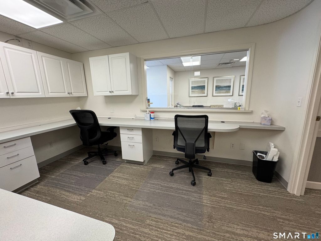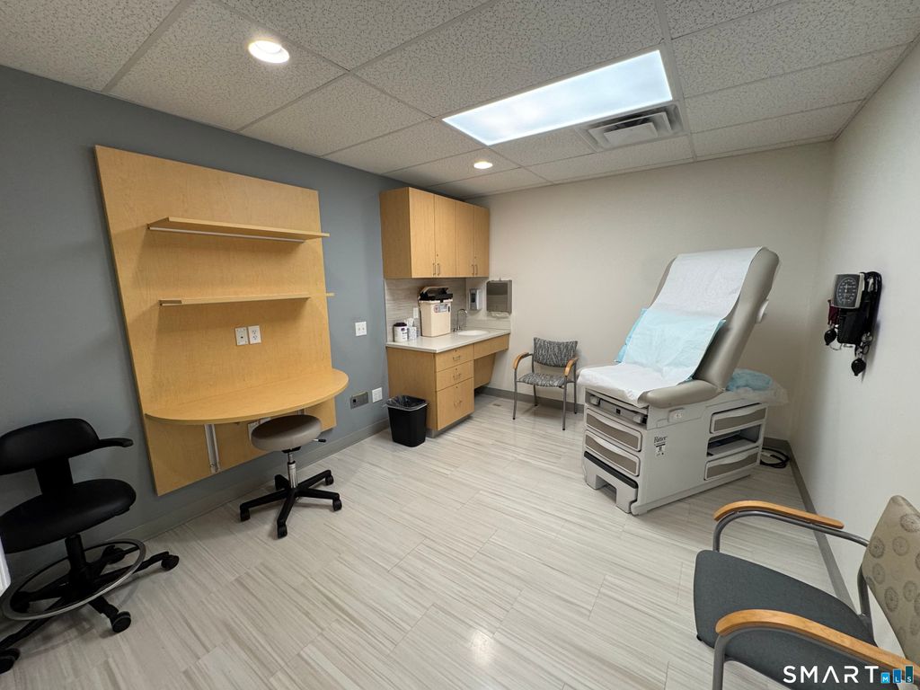 Turn key, 1910 SF Outstanding Medical Office Suite for lease in Guilford's premier medical office park. 1st floor unit in excellent condition, includes waiting room, reception, 4 exam rooms, Dr office with private back door entrance, 2 bathrooms, lab area, consultation office, kitchen area, file room and storage area. Central air and natural gas heat, alarm system and plenty of parking. One deeded parking space. Well established & convenient location location off of I-95, exit 58.