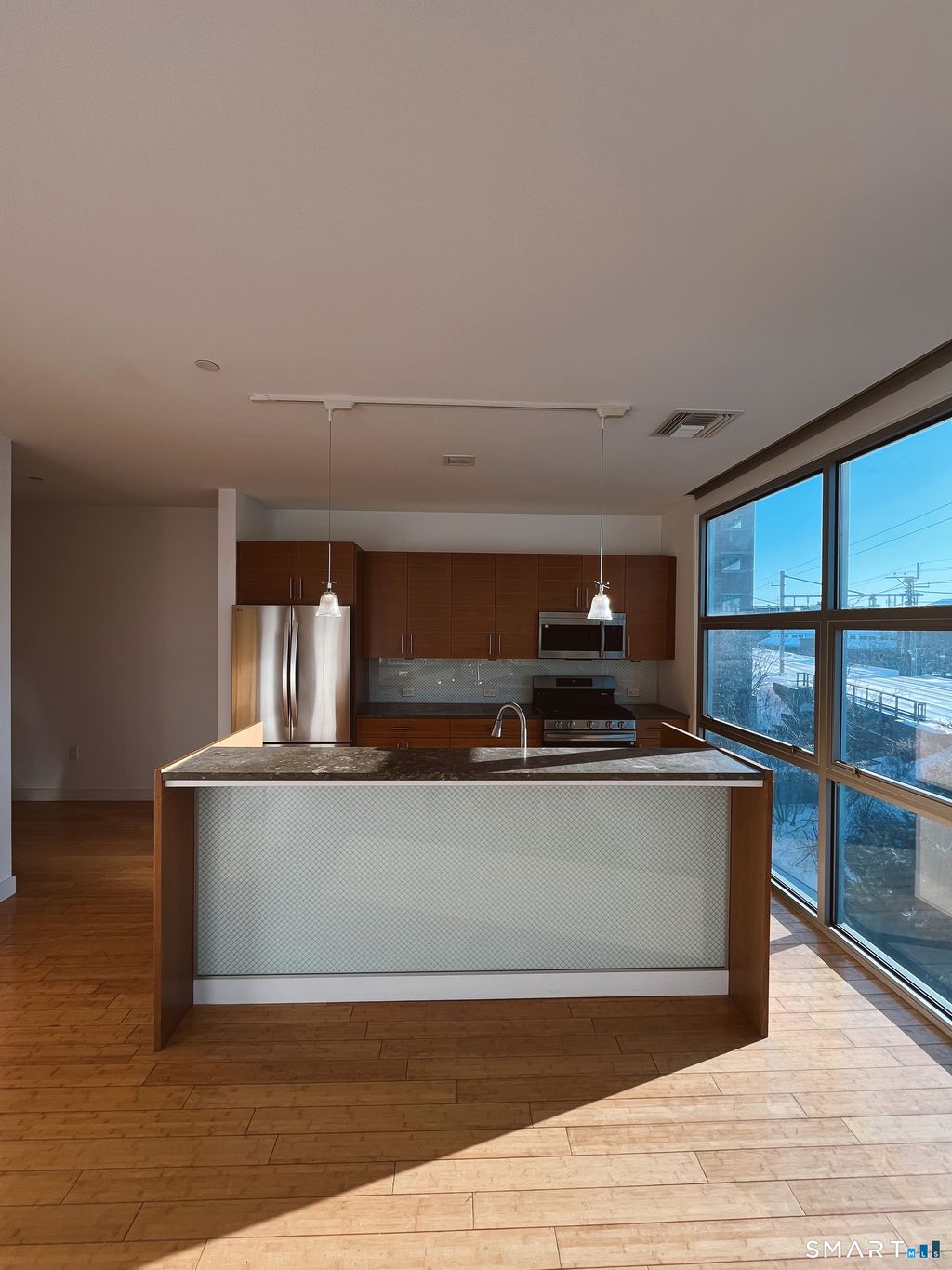 Waterfront living at its finest, directly across from the Maritime Aquarium in the heart of SoNo. Step outside your door and enjoy downtown Norwalk's restaurants, shops, and waterfront lifestyle. This spacious 1BR/1BA unit offers abundant natural light with floor-to-ceiling windows throughout, a modern layout, and in-unit laundry. The building also features an elevator for easy access. Lease includes full use of the fitness center and one assigned garage parking space. Contemporary elegance meets unbeatable convenience.