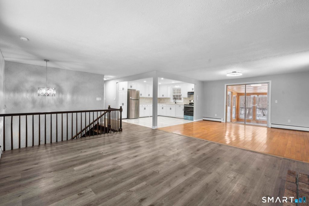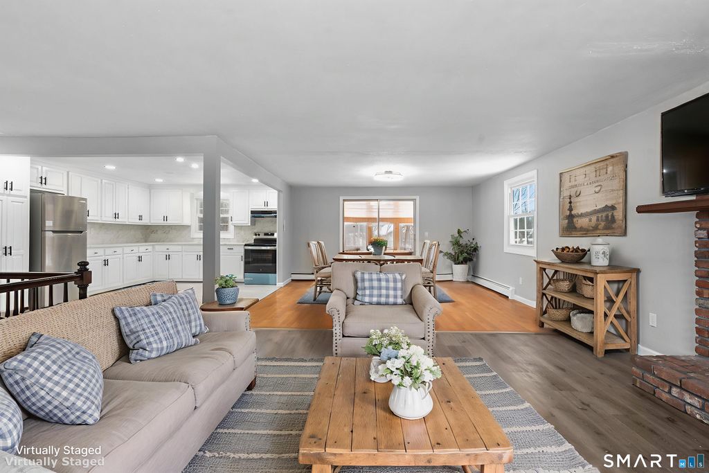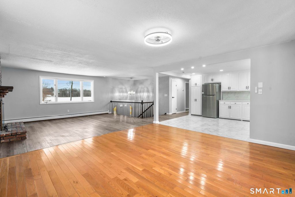 Set on just over half an acre of flat, usable land, this updated raised ranch offers space, privacy, and everyday convenience minutes from Bradley International Airport. The main level is open, bright, and intentionally improved, featuring a renovated kitchen with quartz countertops, modern cabinetry, and a natural connection to the dining and living areas. Updated flooring, fixtures, and tiled bathrooms create a cohesive, modern interior that feels current without being overdone. Three bedrooms are thoughtfully laid out, including a primary suite with a private full bath and walk-in closet, along with walk-in storage in a second bedroom - a rare and practical feature at this size point. The finished lower level adds nearly 700 square feet of usable living space with a fireplace, half bath, and walk-out access, ideal for a family room, home office, gym, or guest area. Outdoor living is extended by a screened porch and adjacent deck overlooking the level yard, offering space to relax or entertain. A two-car garage and oversized driveway provide ample parking and everyday ease. Convenient access to major highways, shopping, dining, and the airport makes this home a strong balance of space, updates, and location.