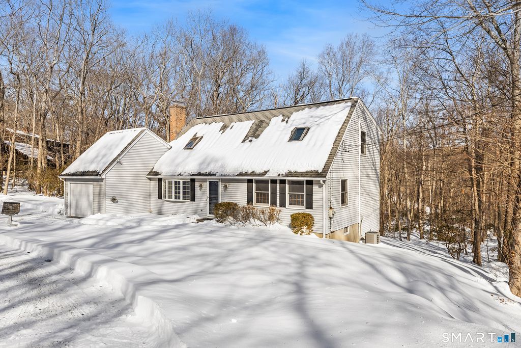 Charming Cape-style home set in a great Haddam location! This 3-bedroom, 3-bath residence features a bright living room with hardwood floors, fireplace, and a bay window. The spacious kitchen offers stainless steel appliances and a breakfast bar that opens to the dining area. The sliding doors lead to a large deck overlooking a lightly wooded backyard-perfect for relaxing or entertaining. The primary bedroom includes an ensuite bath and double closets. Two additional spacious bedrooms upstairs feature skylights and share a full bath with a luxurious jetted tub. Beautiful hardwood floors throughout all bedrooms. The expansive walk-out basement provides future potential for additional living space. Enjoy the added convenience of the one-car attached garage that completes this move-in ready home.