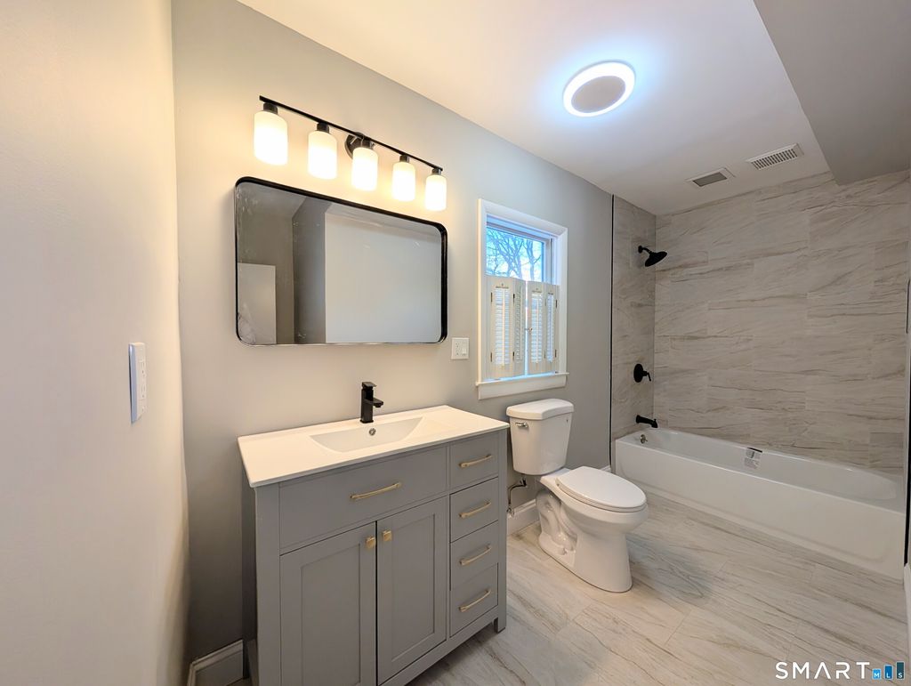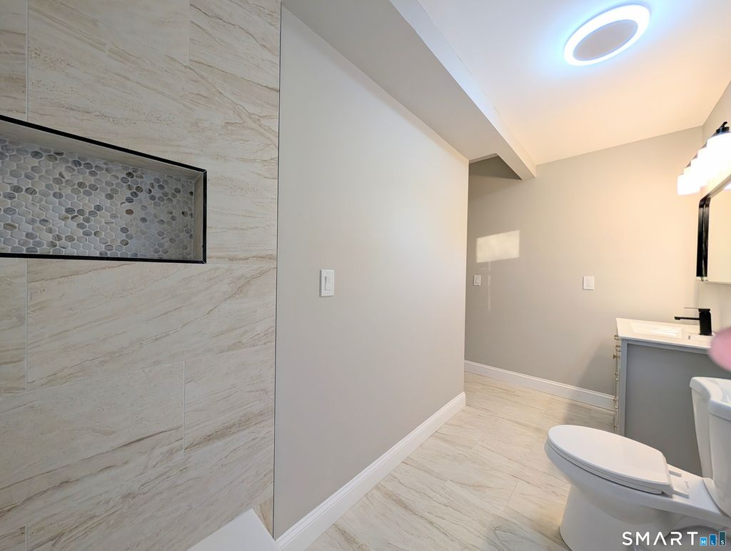Remodeled 3-bedroom, 2 completely renovated full-bath Colonial-style home with an extra-large backyard set on .38 acres and a long, wide paved driveway delivers the perfect blend of style, space, and upgrades. The main level boasts a bright living room with plank hardwood floors, a cozy family or dining room with a pellet stove and access to a freshly painted two-tier deck, and an eat-in kitchen showcasing brand new appliances, Quartz countertops, new solid white oak cabinetry, designer backsplash, and washer/dryer area. A renovated full bath with porcelain-topped vanity, Bluetooth lighting and ventilation, and new ceramic tile completes the first floor, while upstairs you will find a spacious hallway and 3 generously sized bedrooms with a walk-in closet and ample closet space in all bedrooms, a stunning 2nd fully renovated bath with a new vanity, new modern light fixtures, shower niche, ceramic tile, and Bluetooth lighting and fan. The basement is open and dry with with a separate walk-out. Additional highlights include a brand-new roof, 200-amp electrical panel, brand new recessed lighting throughout, striking new fixtures, relaxing front porch, energy-efficient bi-fold window shutters, two sheds, fresh paint, new flooring throughout, and a massive backyard that seals the deal. Perfectly tucked between Routes 1 and 34 for commuters, this move-in-ready West Haven gem won't last.