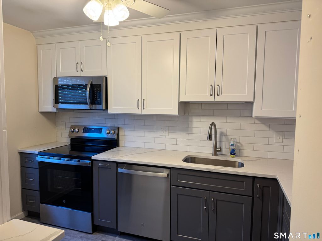Coastal living meets modern luxury - Experience the best of Stamford's most sought-after shoreline neighborhood. This stunning, newly renovated 2-bedroom, 1.5 bath townhouse offers a bright and airy retreat designed for those who appreciate quality & convenience. The gourmet kitchen with sleek finishes offers top of the line appliances. The open-concept living and dining area features a cozy fireplace - perfect for chilly New England evenings. Step through the sliding glass door onto your own private deck, ideal for morning coffee or sunset drinks. With hardwood floors throughout and a full size LG washer/dryer right in the unit - living here it easy. Located in the heart of The Cove, you are minutes away from Cove Island Park. Enjoy walking trails, sandy beaches, tennis courts, and salt-air breezes every single day. Unbeatable location: Whether you're commuting via I-95 or Metro North, or heade downtown for dinner or shopping, everything is just minutes away. This is more than a rental; it's a lifestyle upgrade.
