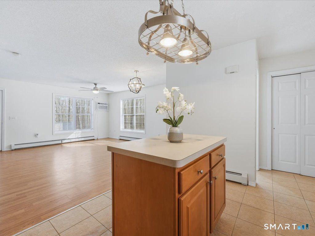 Move-in ready 2BR end unit in a well-maintained complex with a quiet, private setting. Open-concept main level with kitchen, island, stainless steel appliances, and spacious living/dining area with sliders to a deck overlooking wooded surroundings. Upstairs features generously sized bedrooms. Full walk-out basement with laundry hook ups and ample storage. Two assigned parking spaces plus guest parking. Conveniently located near shopping, Foxwoods, I-95, Route 12, and area lakes and beaches. Seller will take care of the current $1,200 special assessment prior to closing. VA and FHA approved.