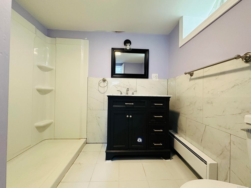 Brand new, huge and sunny studio apt on lower level! Beautiful new kitchen with caesarstone-type countertops, all new cabinets. All new bathroom. 665 sq ft not including 3 BIG closets. Freshly renovated with tasteful cosmetic finishing, inset lighting, closet lights, etc. Util closet has hookups for stackable washer/dryer. One parking spot in building's parking lot. Guests/other cars use plentiful, free street parking. Get your beach sticker at Town Hall with a copy of your lease and use Branford's awesome beaches this summer! Rent includes all utilites! Tenant pays their own cable/. No central air, but one high-BTU window unit will cool the whole apt and elec is included. West facing windows flood the apartment with sun - great on cold winter days. Snow removal is done by tenant. Close to highways, shopping, beaches, schools, and restaurants. Be part of beautiful Branford! Landlord requires the following of all tenants 18+ who must be on the lease: 650+ credit score, total household after-tax/takehome income must be $5000+, no prior eviction, no criminal background, no prior bankruptcy. Pets negotiable: ask. No smoking on property at all.