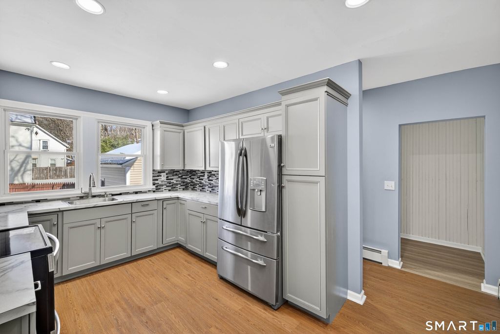 Welcome to 480 East Main Street! This updated 4-bedroom, 2-full-bath home offers over 1,800 square feet of living space with a functional layout and meaningful improvements throughout. The main level includes a full bathroom, an opened kitchen layout, a pantry space ready for shelving, and a large laundry room with hookups conveniently located off the kitchen. The first floor features luxury vinyl plank flooring, while the second floor retains original hardwood floors that have been stained and refinished. Both bathrooms have been fully renovated with new fixtures and finishes. Major updates include fully updated electrical to current code, a gas Lochinvar on-demand heating and hot water system, and insulation upgrades in key living areas. The interior has been freshly painted throughout, with new slab doors, first-floor trim, and updated lighting. The walk-up attic offers additional space ready to be finished, providing future expansion potential. A well-updated home offering space, solid mechanical improvements, and a layout that works for today's living. Schedule your showing today. We are always here to help!