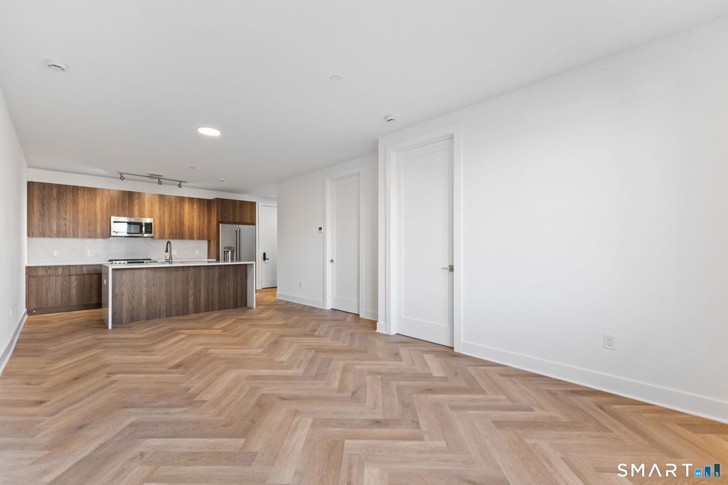 Stunning 2 bed/2 bath residence-one of the premier homes at 100 East, the new boutique luxury building in the commuter-friendly Loughlin Park area of Cos Cob. The open-concept living area features a gourmet kitchen with a waterfall quartz island, custom cabinetry, & premium stainless-steel appliances, complemented by matte-black windows & wide-plank herringbone flooring. The main bedroom suite includes a walk-in closet & spa-like en suite bath, while the second bedroom offers flexibility for a home office. Building amenities include a 3,000 sq ft rooftop deck with a cooking station, a covered garage with EV charging, & private storage units. Just minutes to the train, parks, gourmet markets, restaurants, & Greenwich Avenue-city-style living in a Greenwich suburban setting.
