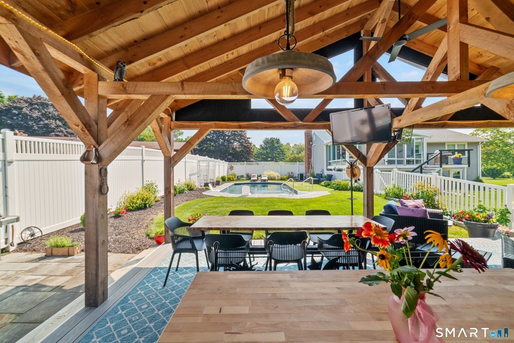 Welcome to 221 Charter Oak Drive, a stunning 3-bed, 2-bath single-family home nestled on a spacious 1.39-acre lot in desirable Watertown, CT. The thoughtful layout offers abundant living space, an open floor plan with a heated and cooled 4 season room bringing in natural light with panoramic outdoor views. The functional floor plan is ideal for everyday living and/or entertaining. Updates are endless to include 4 zone heating system, 5 year old roof and so much more. Continue downstairs to your finished lower level complete with a full bath, jacuzzi tub and a 2 car garage. Bring yourself outdoors and the magic continues with your in ground pool, post and beam outdoor pool house complete with outdoor kitchen, with stainless steel appliances, fire pit, jacuzzi and half bath. Additionally there is a detached 6 car garage for your vehicle storage or flex space for your liking. Enjoy the privacy of a generous lot while still being close to local amenities, schools, and commuter routes. Don't miss your chance to make this home your own!