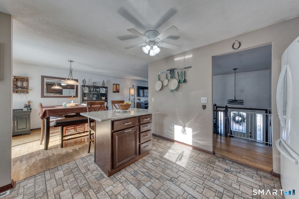 Welcome to this beautifully updated 3-bedroom, 3-bath home tucked away at the end of a quiet cul-de-sac in a desirable South Meriden neighborhood. Offering the perfect balance of modern updates, functional living space, and everyday convenience, this move-in-ready home is designed for comfort, connection, and making lasting memories. Step inside to find hardwood floors throughout most of the main level and a bright, open flow between the kitchen, dining area, and living room. The updated kitchen, along with improvements to the roof, windows, and HVAC system, provide peace of mind and modern appeal. From the dining area, step out onto the oversized deck, creating the perfect setting for summer gatherings, morning coffee, or relaxing evenings overlooking the expansive fenced in backyard. Whether you envision hosting parties, creating a play space, or enjoying room for pets to roam, this outdoor oasis offers endless possibilities. Down the hall, you'll find three inviting bedrooms, including a primary bedroom with a convenient attached half bath. The lower level expands your living space with an additional 532 square feet of finished area, featuring a cozy fireplace, another half bathroom, and laundry room - perfect for a recreational room, home office, or guest retreat. Conveniently located near shopping, schools, and dining, this home combines privacy, neighborhood charm, and accessibility. Come see why this could be the perfect place to start your next chapter.